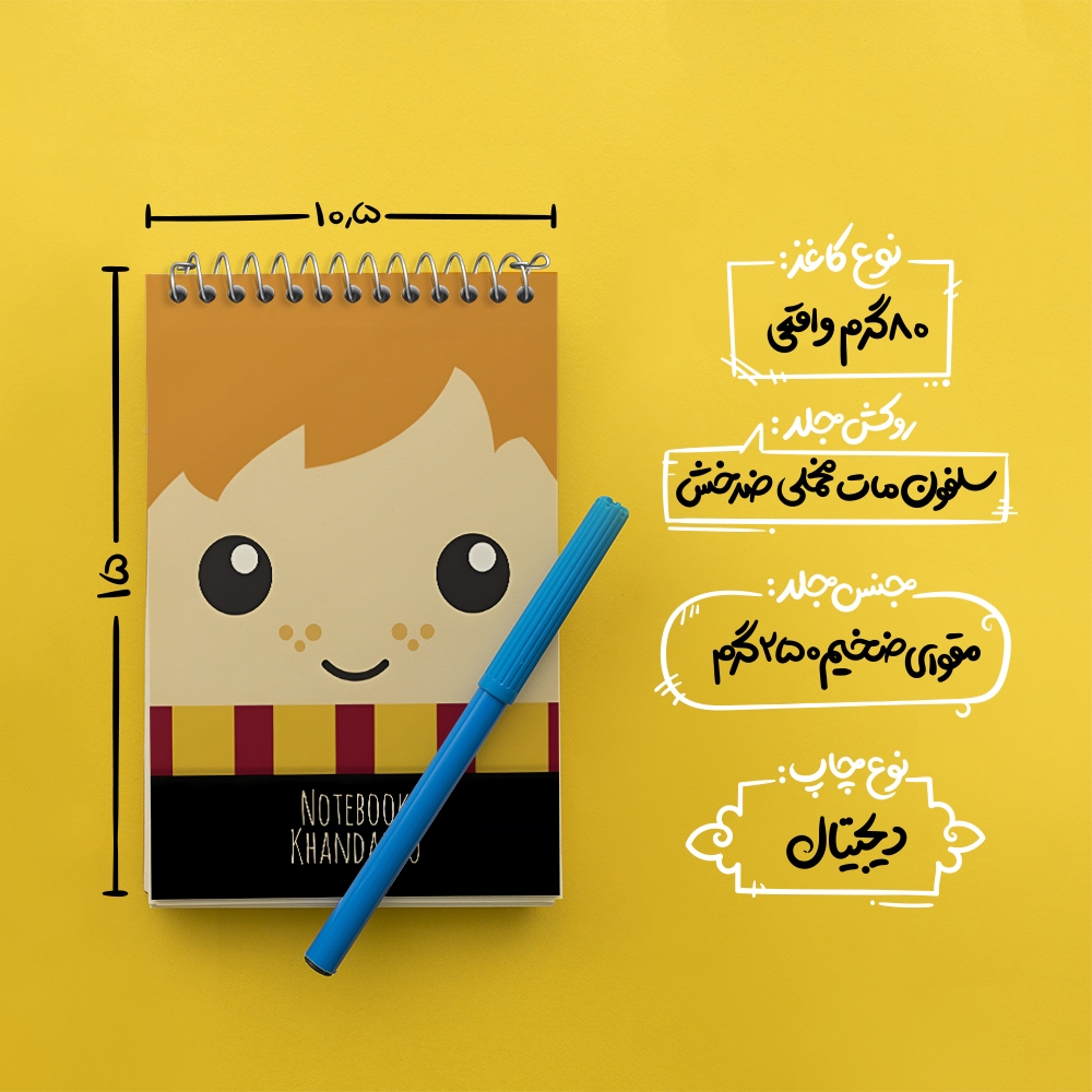 برند خندالو در زمینه تولید انواع دفاتر فانتزی و تحصیلی فعالیت میکند که به دلیل جذابیت ظاهری و طرح های متنوع طرفداران زیادی دارد. دفتر یادداشت خندالو طرح ویزلی هری پاتر (Harry Potter) محصولی مناسب برای همه عاشقان لوازم التحریر است و همچنین همه کسانی که بنا به موقعیت تحصیل یا شغلشان با دفتر و نوشت افزار زیاد سر و کار دارند. در تولید دفتر یادداشت خندالو طرح ویزلی هری پاتر (Harry Potter) از نوع صحافی فنر مارپیچ استفاده شده که در این نوع صحافی برگهها به راحتی چرخیده و یا بیرون آورده می شوند. دفتر های خندالو دارای جلد انعطاف پذیر از جنس مقوای گلاسه 250 گرم با روکش سلفون مات مخملی است که به شما امکان میدهد از دفتر خود بدون اینکه نگرانی از شکستن یا خراب شدن جلد را داشته باشید استفاده کنید و همچنین در این دفاتر از کاغذ 80 گرم با کیفیت استفاده شده که باعث میشود هنگام نوشتن به خوبی جوهر قلم بر روی صفحه نشسته و از خط خوردگیها جلوگیری کند. دفتر یادداشت خندالو با جنس و دوام مناسب، برگه های کاملاً سفید و خطوط طوسی دقیق را داراست که انسان را به نوشتن منظم و زیبا ترغیب میکند. طراحی کاملاً مناسب این دفاتر، به همراه کیفیت بالا، از آن یک محصول مورد علاقه و قابل اعتماد برای همه مقاطع تحصیلی میسازد. دفتر یادداشت خندالو طرح ویزلی هری پاتر (Harry Potter) انتخابی هوشمندانه و مناسب برای افرادی است که به دنبال دفتری با کیفیت و کاربرد عالی هستند. این دفتر، همراه خوبی برای شما در تمام مراحل تحصیل و کار خواهد بود و تجربهای لذتبخش از نوشتن و آموختن را به شما هدیه میدهد.