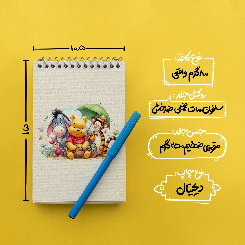 برند خندالو در زمینه تولید انواع دفاتر فانتزی و تحصیلی فعالیت میکند که به دلیل جذابیت ظاهری و طرح های متنوع طرفداران زیادی دارد. دفتر یادداشت خندالو طرح وینی پو محصولی مناسب برای همه عاشقان لوازم التحریر است و همچنین همه کسانی که بنا به موقعیت تحصیل یا شغلشان با دفتر و نوشت افزار زیاد سر و کار دارند. در تولید دفتر یادداشت خندالو طرح وینی پو از نوع صحافی فنر مارپیچ استفاده شده که در این نوع صحافی برگه‌ها به راحتی چرخیده و یا بیرون آورده می شوند.