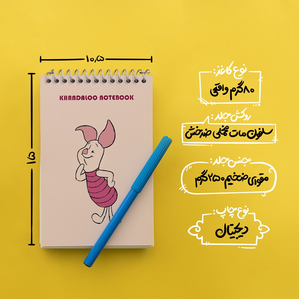 برند خندالو در زمینه تولید انواع دفاتر فانتزی و تحصیلی فعالیت میکند که به دلیل جذابیت ظاهری و طرح های متنوع طرفداران زیادی دارد. دفتر یادداشت خندالو طرح وینی پو (Winnie the Pooh) محصولی مناسب برای همه عاشقان لوازم التحریر است و همچنین همه کسانی که بنا به موقعیت تحصیل یا شغلشان با دفتر و نوشت افزار زیاد سر و کار دارند. در تولید دفتر یادداشت خندالو طرح وینی پو (Winnie the Pooh) از نوع صحافی فنر مارپیچ استفاده شده که در این نوع صحافی برگهها به راحتی چرخیده و یا بیرون آورده می شوند. دفتر های خندالو دارای جلد انعطاف پذیر از جنس مقوای گلاسه 250 گرم با روکش سلفون مات مخملی است که به شما امکان میدهد از دفتر خود بدون اینکه نگرانی از شکستن یا خراب شدن جلد را داشته باشید استفاده کنید و همچنین در این دفاتر از کاغذ 80 گرم با کیفیت استفاده شده که باعث میشود هنگام نوشتن به خوبی جوهر قلم بر روی صفحه نشسته و از خط خوردگیها جلوگیری کند. دفتر یادداشت خندالو با جنس و دوام مناسب، برگه های کاملاً سفید و خطوط طوسی دقیق را داراست که انسان را به نوشتن منظم و زیبا ترغیب میکند. طراحی کاملاً مناسب این دفاتر، به همراه کیفیت بالا، از آن یک محصول مورد علاقه و قابل اعتماد برای همه مقاطع تحصیلی میسازد. دفتر یادداشت خندالو طرح وینی پو (Winnie the Pooh) انتخابی هوشمندانه و مناسب برای افرادی است که به دنبال دفتری با کیفیت و کاربرد عالی هستند. این دفتر، همراه خوبی برای شما در تمام مراحل تحصیل و کار خواهد بود و تجربهای لذتبخش از نوشتن و آموختن را به شما هدیه میدهد.
