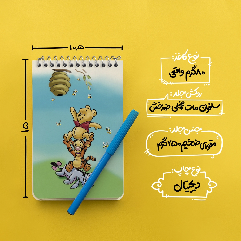 برند خندالو در زمینه تولید انواع دفاتر فانتزی و تحصیلی فعالیت میکند که به دلیل جذابیت ظاهری و طرح های متنوع طرفداران زیادی دارد. دفتر یادداشت خندالو طرح وینی پو محصولی مناسب برای همه عاشقان لوازم التحریر است و همچنین همه کسانی که بنا به موقعیت تحصیل یا شغلشان با دفتر و نوشت افزار زیاد سر و کار دارند. در تولید دفتر یادداشت خندالو طرح وینی پو از نوع صحافی فنر مارپیچ استفاده شده که در این نوع صحافی برگه‌ها به راحتی چرخیده و یا بیرون آورده می شوند.