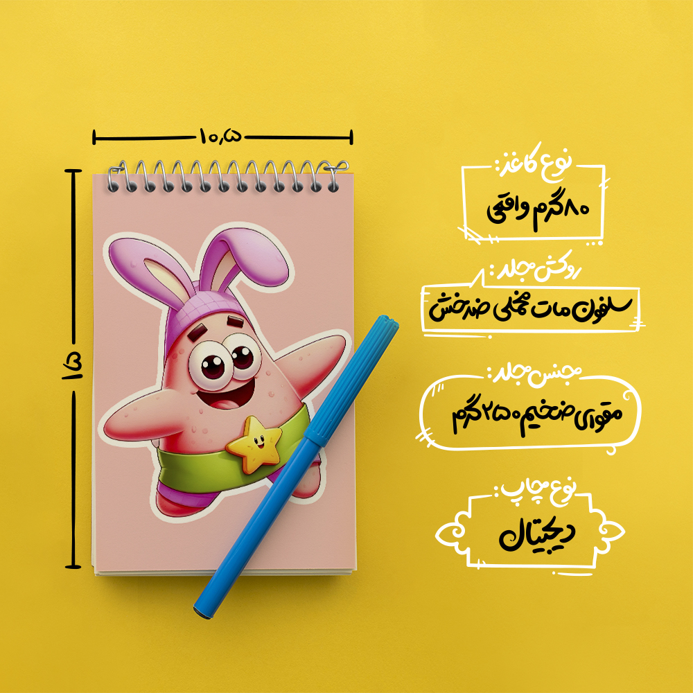 برند خندالو در زمینه تولید انواع دفاتر فانتزی و تحصیلی فعالیت میکند که به دلیل جذابیت ظاهری و طرح های متنوع طرفداران زیادی دارد. دفتر یادداشت خندالو طرح پاتریک باب اسفنجی محصولی مناسب برای همه عاشقان لوازم التحریر است و همچنین همه کسانی که بنا به موقعیت تحصیل یا شغلشان با دفتر و نوشت افزار زیاد سر و کار دارند. در تولید دفتر یادداشت خندالو طرح پاتریک باب اسفنجی از نوع صحافی فنر مارپیچ استفاده شده که در این نوع صحافی برگه‌ها به راحتی چرخیده و یا بیرون آورده می شوند.
