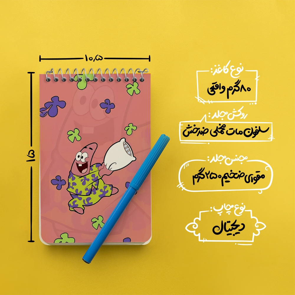 برند خندالو در زمینه تولید انواع دفاتر فانتزی و تحصیلی فعالیت میکند که به دلیل جذابیت ظاهری و طرح های متنوع طرفداران زیادی دارد. دفتر یادداشت خندالو طرح پاتریک محصولی مناسب برای همه عاشقان لوازم التحریر است و همچنین همه کسانی که بنا به موقعیت تحصیل یا شغلشان با دفتر و نوشت افزار زیاد سر و کار دارند. در تولید دفتر یادداشت خندالو طرح پاتریک از نوع صحافی فنر مارپیچ استفاده شده که در این نوع صحافی برگهها به راحتی چرخیده و یا بیرون آورده می شوند. دفتر های خندالو دارای جلد انعطاف پذیر از جنس مقوای گلاسه 250 گرم با روکش سلفون مات مخملی است که به شما امکان میدهد از دفتر خود بدون اینکه نگرانی از شکستن یا خراب شدن جلد را داشته باشید استفاده کنید و همچنین در این دفاتر از کاغذ 80 گرم با کیفیت استفاده شده که باعث میشود هنگام نوشتن به خوبی جوهر قلم بر روی صفحه نشسته و از خط خوردگیها جلوگیری کند. دفتر یادداشت خندالو با جنس و دوام مناسب، برگه های کاملاً سفید و خطوط طوسی دقیق را داراست که انسان را به نوشتن منظم و زیبا ترغیب میکند. طراحی کاملاً مناسب این دفاتر، به همراه کیفیت بالا، از آن یک محصول مورد علاقه و قابل اعتماد برای همه مقاطع تحصیلی میسازد. دفتر یادداشت خندالو طرح پاتریک انتخابی هوشمندانه و مناسب برای افرادی است که به دنبال دفتری با کیفیت و کاربرد عالی هستند. این دفتر، همراه خوبی برای شما در تمام مراحل تحصیل و کار خواهد بود و تجربهای لذتبخش از نوشتن و آموختن را به شما هدیه میدهد.