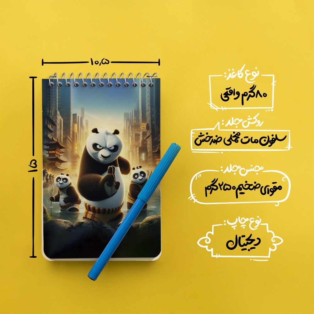 برند خندالو در زمینه تولید انواع دفاتر فانتزی و تحصیلی فعالیت میکند که به دلیل جذابیت ظاهری و طرح های متنوع طرفداران زیادی دارد. دفتر یادداشت خندالو طرح پاندای کونگ فوکار محصولی مناسب برای همه عاشقان لوازم التحریر است و همچنین همه کسانی که بنا به موقعیت تحصیل یا شغلشان با دفتر و نوشت افزار زیاد سر و کار دارند. در تولید دفتر یادداشت خندالو طرح پاندای کونگ فوکار از نوع صحافی فنر مارپیچ استفاده شده که در این نوع صحافی برگهها به راحتی چرخیده و یا بیرون آورده می شوند. دفتر های خندالو دارای جلد انعطاف پذیر از جنس مقوای گلاسه 250 گرم با روکش سلفون مات مخملی است که به شما امکان میدهد از دفتر خود بدون اینکه نگرانی از شکستن یا خراب شدن جلد را داشته باشید استفاده کنید و همچنین در این دفاتر از کاغذ 80 گرم با کیفیت استفاده شده که باعث میشود هنگام نوشتن به خوبی جوهر قلم بر روی صفحه نشسته و از خط خوردگیها جلوگیری کند. دفتر یادداشت خندالو با جنس و دوام مناسب، برگه های کاملاً سفید و خطوط طوسی دقیق را داراست که انسان را به نوشتن منظم و زیبا ترغیب میکند. طراحی کاملاً مناسب این دفاتر، به همراه کیفیت بالا، از آن یک محصول مورد علاقه و قابل اعتماد برای همه مقاطع تحصیلی میسازد. دفتر یادداشت خندالو طرح پاندای کونگ فوکار انتخابی هوشمندانه و مناسب برای افرادی است که به دنبال دفتری با کیفیت و کاربرد عالی هستند. این دفتر، همراه خوبی برای شما در تمام مراحل تحصیل و کار خواهد بود و تجربهای لذتبخش از نوشتن و آموختن را به شما هدیه میدهد.