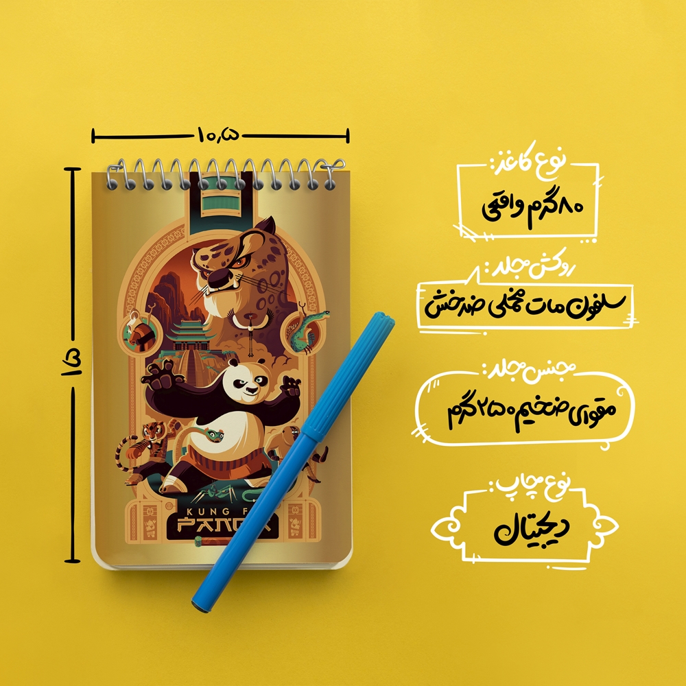 برند خندالو در زمینه تولید انواع دفاتر فانتزی و تحصیلی فعالیت میکند که به دلیل جذابیت ظاهری و طرح های متنوع طرفداران زیادی دارد. دفتر یادداشت خندالو طرح پاندا کونگ فو کار محصولی مناسب برای همه عاشقان لوازم التحریر است و همچنین همه کسانی که بنا به موقعیت تحصیل یا شغلشان با دفتر و نوشت افزار زیاد سر و کار دارند. در تولید دفتر یادداشت خندالو طرح پاندا کونگ فو کار از نوع صحافی فنر مارپیچ استفاده شده که در این نوع صحافی برگه‌ها به راحتی چرخیده و یا بیرون آورده می شوند.