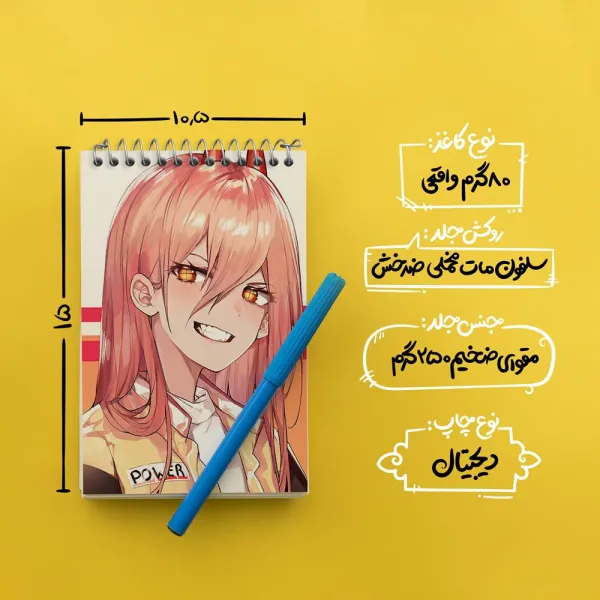 برند خندالو در زمینه تولید انواع دفاتر فانتزی و تحصیلی فعالیت میکند که به دلیل جذابیت ظاهری و طرح های متنوع طرفداران زیادی دارد. دفتر یادداشت خندالو طرح پاور انیمه مرد اره ای Chainsaw Man محصولی مناسب برای همه عاشقان لوازم التحریر است و همچنین همه کسانی که بنا به موقعیت تحصیل یا شغلشان با دفتر و نوشت افزار زیاد سر و کار دارند. در تولید دفتر یادداشت خندالو طرح پاور انیمه مرد اره ای Chainsaw Man از نوع صحافی فنر مارپیچ استفاده شده که در این نوع صحافی برگهها به راحتی چرخیده و یا بیرون آورده می شوند. دفتر های خندالو دارای جلد انعطاف پذیر از جنس مقوای گلاسه 250 گرم با روکش سلفون مات مخملی است که به شما امکان میدهد از دفتر خود بدون اینکه نگرانی از شکستن یا خراب شدن جلد را داشته باشید استفاده کنید و همچنین در این دفاتر از کاغذ 80 گرم با کیفیت استفاده شده که باعث میشود هنگام نوشتن به خوبی جوهر قلم بر روی صفحه نشسته و از خط خوردگیها جلوگیری کند. دفتر یادداشت خندالو با جنس و دوام مناسب، برگه های کاملاً سفید و خطوط طوسی دقیق را داراست که انسان را به نوشتن منظم و زیبا ترغیب میکند. طراحی کاملاً مناسب این دفاتر، به همراه کیفیت بالا، از آن یک محصول مورد علاقه و قابل اعتماد برای همه مقاطع تحصیلی میسازد. دفتر یادداشت خندالو طرح پاور انیمه مرد اره ای Chainsaw Man انتخابی هوشمندانه و مناسب برای افرادی است که به دنبال دفتری با کیفیت و کاربرد عالی هستند. این دفتر، همراه خوبی برای شما در تمام مراحل تحصیل و کار خواهد بود و تجربهای لذتبخش از نوشتن و آموختن را به شما هدیه میدهد.