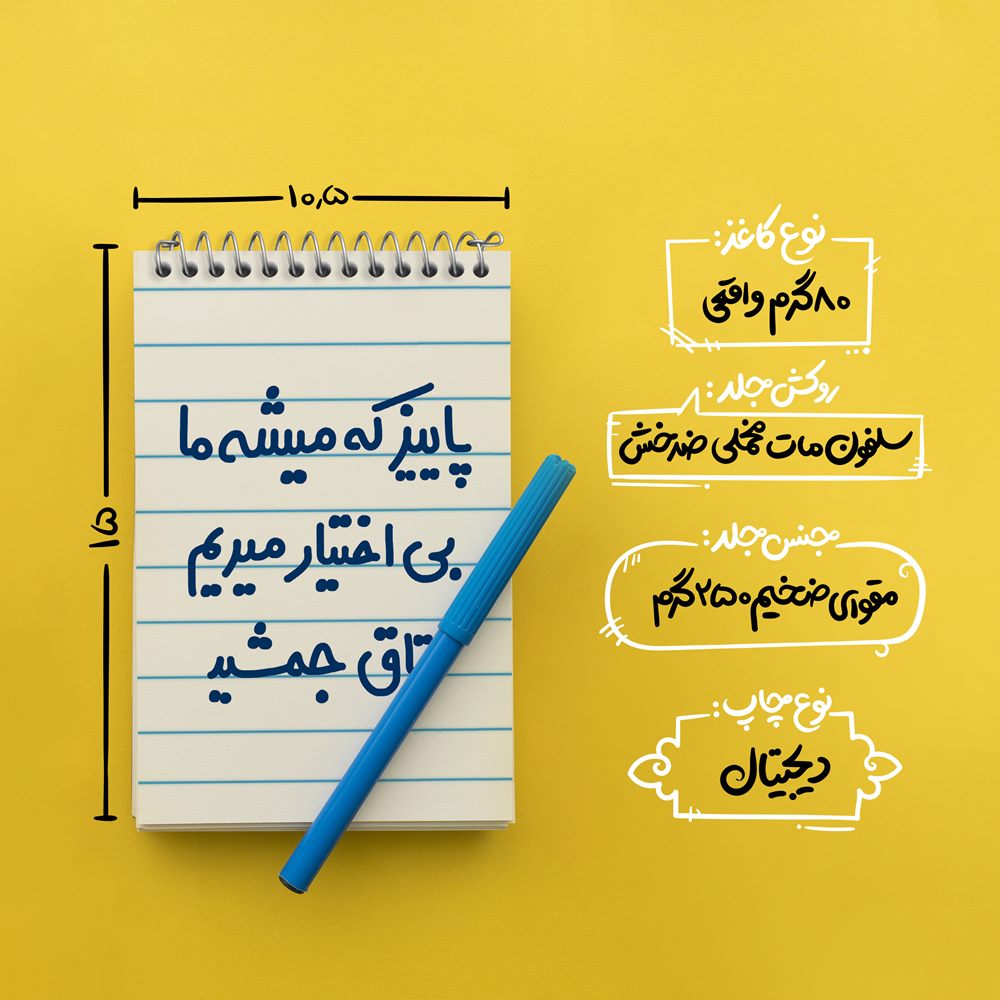 برند خندالو در زمینه تولید انواع دفاتر فانتزی و تحصیلی فعالیت میکند که به دلیل جذابیت ظاهری و طرح های متنوع طرفداران زیادی دارد. دفتر یادداشت خندالو طرح پاییز که میشه ما بی اختیار میریم اتاق جمشید محصولی مناسب برای همه عاشقان لوازم التحریر است و همچنین همه کسانی که بنا به موقعیت تحصیل یا شغلشان با دفتر و نوشت افزار زیاد سر و کار دارند. در تولید دفتر یادداشت خندالو طرح پاییز که میشه ما بی اختیار میریم اتاق جمشید از نوع صحافی فنر مارپیچ استفاده شده که در این نوع صحافی برگهها به راحتی چرخیده و یا بیرون آورده می شوند. دفتر های خندالو دارای جلد انعطاف پذیر از جنس مقوای گلاسه 250 گرم با روکش سلفون مات مخملی است که به شما امکان میدهد از دفتر خود بدون اینکه نگرانی از شکستن یا خراب شدن جلد را داشته باشید استفاده کنید و همچنین در این دفاتر از کاغذ 80 گرم با کیفیت استفاده شده که باعث میشود هنگام نوشتن به خوبی جوهر قلم بر روی صفحه نشسته و از خط خوردگیها جلوگیری کند. دفتر یادداشت خندالو با جنس و دوام مناسب، برگه های کاملاً سفید و خطوط طوسی دقیق را داراست که انسان را به نوشتن منظم و زیبا ترغیب میکند. طراحی کاملاً مناسب این دفاتر، به همراه کیفیت بالا، از آن یک محصول مورد علاقه و قابل اعتماد برای همه مقاطع تحصیلی میسازد. دفتر یادداشت خندالو طرح پاییز که میشه ما بی اختیار میریم اتاق جمشید انتخابی هوشمندانه و مناسب برای افرادی است که به دنبال دفتری با کیفیت و کاربرد عالی هستند. این دفتر، همراه خوبی برای شما در تمام مراحل تحصیل و کار خواهد بود و تجربهای لذتبخش از نوشتن و آموختن را به شما هدیه میدهد.