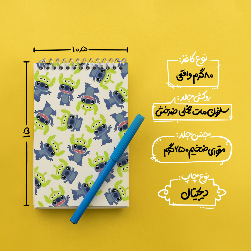 برند خندالو در زمینه تولید انواع دفاتر فانتزی و تحصیلی فعالیت میکند که به دلیل جذابیت ظاهری و طرح های متنوع طرفداران زیادی دارد. دفتر یادداشت خندالو طرح پترن استیچ (Stitch) محصولی مناسب برای همه عاشقان لوازم التحریر است و همچنین همه کسانی که بنا به موقعیت تحصیل یا شغلشان با دفتر و نوشت افزار زیاد سر و کار دارند. در تولید دفتر یادداشت خندالو طرح پترن استیچ (Stitch) از نوع صحافی فنر مارپیچ استفاده شده که در این نوع صحافی برگهها به راحتی چرخیده و یا بیرون آورده می شوند. دفتر های خندالو دارای جلد انعطاف پذیر از جنس مقوای گلاسه 250 گرم با روکش سلفون مات مخملی است که به شما امکان میدهد از دفتر خود بدون اینکه نگرانی از شکستن یا خراب شدن جلد را داشته باشید استفاده کنید و همچنین در این دفاتر از کاغذ 80 گرم با کیفیت استفاده شده که باعث میشود هنگام نوشتن به خوبی جوهر قلم بر روی صفحه نشسته و از خط خوردگیها جلوگیری کند. دفتر یادداشت خندالو با جنس و دوام مناسب، برگه های کاملاً سفید و خطوط طوسی دقیق را داراست که انسان را به نوشتن منظم و زیبا ترغیب میکند. طراحی کاملاً مناسب این دفاتر، به همراه کیفیت بالا، از آن یک محصول مورد علاقه و قابل اعتماد برای همه مقاطع تحصیلی میسازد. دفتر یادداشت خندالو طرح پترن استیچ (Stitch) انتخابی هوشمندانه و مناسب برای افرادی است که به دنبال دفتری با کیفیت و کاربرد عالی هستند. این دفتر، همراه خوبی برای شما در تمام مراحل تحصیل و کار خواهد بود و تجربهای لذتبخش از نوشتن و آموختن را به شما هدیه میدهد.