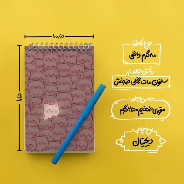 برند خندالو در زمینه تولید انواع دفاتر فانتزی و تحصیلی فعالیت میکند که به دلیل جذابیت ظاهری و طرح های متنوع طرفداران زیادی دارد. دفتر یادداشت خندالو طرح پترن خوک محصولی مناسب برای همه عاشقان لوازم التحریر است و همچنین همه کسانی که بنا به موقعیت تحصیل یا شغلشان با دفتر و نوشت افزار زیاد سر و کار دارند. در تولید دفتر یادداشت خندالو طرح پترن خوک از نوع صحافی فنر مارپیچ استفاده شده که در این نوع صحافی برگهها به راحتی چرخیده و یا بیرون آورده می شوند. دفتر های خندالو دارای جلد انعطاف پذیر از جنس مقوای گلاسه 250 گرم با روکش سلفون مات مخملی است که به شما امکان میدهد از دفتر خود بدون اینکه نگرانی از شکستن یا خراب شدن جلد را داشته باشید استفاده کنید و همچنین در این دفاتر از کاغذ 80 گرم با کیفیت استفاده شده که باعث میشود هنگام نوشتن به خوبی جوهر قلم بر روی صفحه نشسته و از خط خوردگیها جلوگیری کند. دفتر یادداشت خندالو با جنس و دوام مناسب، برگه های کاملاً سفید و خطوط طوسی دقیق را داراست که انسان را به نوشتن منظم و زیبا ترغیب میکند. طراحی کاملاً مناسب این دفاتر، به همراه کیفیت بالا، از آن یک محصول مورد علاقه و قابل اعتماد برای همه مقاطع تحصیلی میسازد. دفتر یادداشت خندالو طرح پترن خوک انتخابی هوشمندانه و مناسب برای افرادی است که به دنبال دفتری با کیفیت و کاربرد عالی هستند. این دفتر، همراه خوبی برای شما در تمام مراحل تحصیل و کار خواهد بود و تجربهای لذتبخش از نوشتن و آموختن را به شما هدیه میدهد.