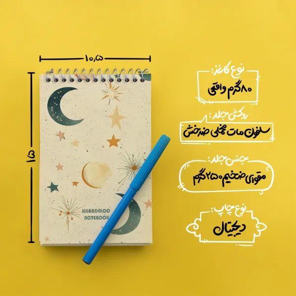 برند خندالو در زمینه تولید انواع دفاتر فانتزی و تحصیلی فعالیت میکند که به دلیل جذابیت ظاهری و طرح های متنوع طرفداران زیادی دارد. دفتر یادداشت خندالو طرح پترن ماه و ستاره محصولی مناسب برای همه عاشقان لوازم التحریر است و همچنین همه کسانی که بنا به موقعیت تحصیل یا شغلشان با دفتر و نوشت افزار زیاد سر و کار دارند. در تولید دفتر یادداشت خندالو طرح پترن ماه و ستاره از نوع صحافی فنر مارپیچ استفاده شده که در این نوع صحافی برگهها به راحتی چرخیده و یا بیرون آورده می شوند. دفتر های خندالو دارای جلد انعطاف پذیر از جنس مقوای گلاسه 250 گرم با روکش سلفون مات مخملی است که به شما امکان میدهد از دفتر خود بدون اینکه نگرانی از شکستن یا خراب شدن جلد را داشته باشید استفاده کنید و همچنین در این دفاتر از کاغذ 80 گرم با کیفیت استفاده شده که باعث میشود هنگام نوشتن به خوبی جوهر قلم بر روی صفحه نشسته و از خط خوردگیها جلوگیری کند. دفتر یادداشت خندالو با جنس و دوام مناسب، برگه های کاملاً سفید و خطوط طوسی دقیق را داراست که انسان را به نوشتن منظم و زیبا ترغیب میکند. طراحی کاملاً مناسب این دفاتر، به همراه کیفیت بالا، از آن یک محصول مورد علاقه و قابل اعتماد برای همه مقاطع تحصیلی میسازد. دفتر یادداشت خندالو طرح پترن ماه و ستاره انتخابی هوشمندانه و مناسب برای افرادی است که به دنبال دفتری با کیفیت و کاربرد عالی هستند. این دفتر، همراه خوبی برای شما در تمام مراحل تحصیل و کار خواهد بود و تجربهای لذتبخش از نوشتن و آموختن را به شما هدیه میدهد.
