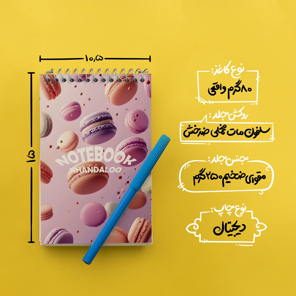 برند خندالو در زمینه تولید انواع دفاتر فانتزی و تحصیلی فعالیت میکند که به دلیل جذابیت ظاهری و طرح های متنوع طرفداران زیادی دارد. دفتر یادداشت خندالو طرح پترن ماکارون (Macarons) محصولی مناسب برای همه عاشقان لوازم التحریر است و همچنین همه کسانی که بنا به موقعیت تحصیل یا شغلشان با دفتر و نوشت افزار زیاد سر و کار دارند. در تولید دفتر یادداشت خندالو طرح پترن ماکارون (Macarons) از نوع صحافی فنر مارپیچ استفاده شده که در این نوع صحافی برگهها به راحتی چرخیده و یا بیرون آورده می شوند. دفتر های خندالو دارای جلد انعطاف پذیر از جنس مقوای گلاسه 250 گرم با روکش سلفون مات مخملی است که به شما امکان میدهد از دفتر خود بدون اینکه نگرانی از شکستن یا خراب شدن جلد را داشته باشید استفاده کنید و همچنین در این دفاتر از کاغذ 80 گرم با کیفیت استفاده شده که باعث میشود هنگام نوشتن به خوبی جوهر قلم بر روی صفحه نشسته و از خط خوردگیها جلوگیری کند. دفتر یادداشت خندالو با جنس و دوام مناسب، برگه های کاملاً سفید و خطوط طوسی دقیق را داراست که انسان را به نوشتن منظم و زیبا ترغیب میکند. طراحی کاملاً مناسب این دفاتر، به همراه کیفیت بالا، از آن یک محصول مورد علاقه و قابل اعتماد برای همه مقاطع تحصیلی میسازد. دفتر یادداشت خندالو طرح پترن ماکارون (Macarons) انتخابی هوشمندانه و مناسب برای افرادی است که به دنبال دفتری با کیفیت و کاربرد عالی هستند. این دفتر، همراه خوبی برای شما در تمام مراحل تحصیل و کار خواهد بود و تجربهای لذتبخش از نوشتن و آموختن را به شما هدیه میدهد.