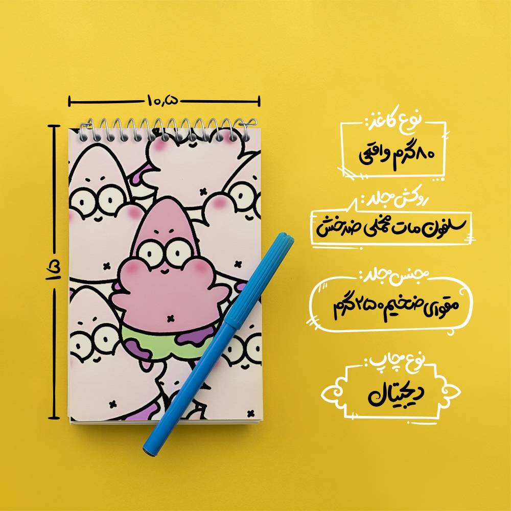 برند خندالو در زمینه تولید انواع دفاتر فانتزی و تحصیلی فعالیت میکند که به دلیل جذابیت ظاهری و طرح های متنوع طرفداران زیادی دارد. دفتر یادداشت خندالو طرح پترن پاتریک محصولی مناسب برای همه عاشقان لوازم التحریر است و همچنین همه کسانی که بنا به موقعیت تحصیل یا شغلشان با دفتر و نوشت افزار زیاد سر و کار دارند. در تولید دفتر یادداشت خندالو طرح پترن پاتریک از نوع صحافی فنر مارپیچ استفاده شده که در این نوع صحافی برگهها به راحتی چرخیده و یا بیرون آورده می شوند. دفتر های خندالو دارای جلد انعطاف پذیر از جنس مقوای گلاسه 250 گرم با روکش سلفون مات مخملی است که به شما امکان میدهد از دفتر خود بدون اینکه نگرانی از شکستن یا خراب شدن جلد را داشته باشید استفاده کنید و همچنین در این دفاتر از کاغذ 80 گرم با کیفیت استفاده شده که باعث میشود هنگام نوشتن به خوبی جوهر قلم بر روی صفحه نشسته و از خط خوردگیها جلوگیری کند. دفتر یادداشت خندالو با جنس و دوام مناسب، برگه های کاملاً سفید و خطوط طوسی دقیق را داراست که انسان را به نوشتن منظم و زیبا ترغیب میکند. طراحی کاملاً مناسب این دفاتر، به همراه کیفیت بالا، از آن یک محصول مورد علاقه و قابل اعتماد برای همه مقاطع تحصیلی میسازد. دفتر یادداشت خندالو طرح پترن پاتریک انتخابی هوشمندانه و مناسب برای افرادی است که به دنبال دفتری با کیفیت و کاربرد عالی هستند. این دفتر، همراه خوبی برای شما در تمام مراحل تحصیل و کار خواهد بود و تجربهای لذتبخش از نوشتن و آموختن را به شما هدیه میدهد.