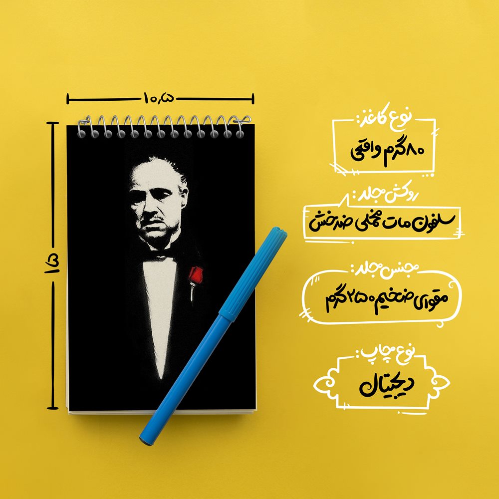 برند خندالو در زمینه تولید انواع دفاتر فانتزی و تحصیلی فعالیت میکند که به دلیل جذابیت ظاهری و طرح های متنوع طرفداران زیادی دارد. دفتر یادداشت خندالو طرح پدرخوانده The Godfather محصولی مناسب برای همه عاشقان لوازم التحریر است و همچنین همه کسانی که بنا به موقعیت تحصیل یا شغلشان با دفتر و نوشت افزار زیاد سر و کار دارند. در تولید دفتر یادداشت خندالو طرح پدرخوانده The Godfather از نوع صحافی فنر مارپیچ استفاده شده که در این نوع صحافی برگه‌ها به راحتی چرخیده و یا بیرون آورده می شوند.