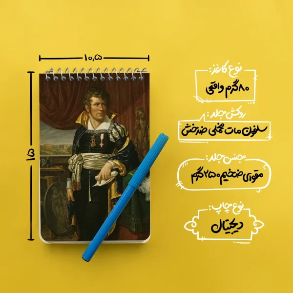 برند خندالو در زمینه تولید انواع دفاتر فانتزی و تحصیلی فعالیت میکند که به دلیل جذابیت ظاهری و طرح های متنوع طرفداران زیادی دارد. دفتر یادداشت خندالو طرح پرتره مجسمه ساز برتل توروالدسن اثر ژاکوب مونک محصولی مناسب برای همه عاشقان لوازم التحریر است و همچنین همه کسانی که بنا به موقعیت تحصیل یا شغلشان با دفتر و نوشت افزار زیاد سر و کار دارند. در تولید دفتر یادداشت خندالو طرح پرتره مجسمه ساز برتل توروالدسن اثر ژاکوب مونک از نوع صحافی فنر مارپیچ استفاده شده که در این نوع صحافی برگهها به راحتی چرخیده و یا بیرون آورده می شوند. دفتر های خندالو دارای جلد انعطاف پذیر از جنس مقوای گلاسه 250 گرم با روکش سلفون مات مخملی است که به شما امکان میدهد از دفتر خود بدون اینکه نگرانی از شکستن یا خراب شدن جلد را داشته باشید استفاده کنید و همچنین در این دفاتر از کاغذ 80 گرم با کیفیت استفاده شده که باعث میشود هنگام نوشتن به خوبی جوهر قلم بر روی صفحه نشسته و از خط خوردگیها جلوگیری کند. دفتر یادداشت خندالو با جنس و دوام مناسب، برگه های کاملاً سفید و خطوط طوسی دقیق را داراست که انسان را به نوشتن منظم و زیبا ترغیب میکند. طراحی کاملاً مناسب این دفاتر، به همراه کیفیت بالا، از آن یک محصول مورد علاقه و قابل اعتماد برای همه مقاطع تحصیلی میسازد. دفتر یادداشت خندالو طرح پرتره مجسمه ساز برتل توروالدسن اثر ژاکوب مونک انتخابی هوشمندانه و مناسب برای افرادی است که به دنبال دفتری با کیفیت و کاربرد عالی هستند. این دفتر، همراه خوبی برای شما در تمام مراحل تحصیل و کار خواهد بود و تجربهای لذتبخش از نوشتن و آموختن را به شما هدیه میدهد.