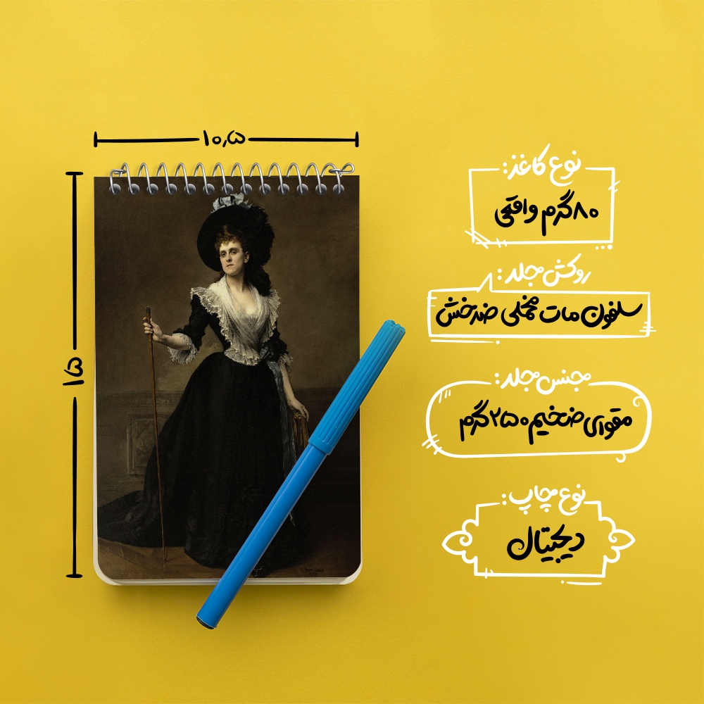 برند خندالو در زمینه تولید انواع دفاتر فانتزی و تحصیلی فعالیت میکند که به دلیل جذابیت ظاهری و طرح های متنوع طرفداران زیادی دارد. دفتر یادداشت خندالو طرح پرتره کنتس ادموند رکوپه اثر ادوارد برنارد دبات پونسان محصولی مناسب برای همه عاشقان لوازم التحریر است و همچنین همه کسانی که بنا به موقعیت تحصیل یا شغلشان با دفتر و نوشت افزار زیاد سر و کار دارند. در تولید دفتر یادداشت خندالو طرح پرتره کنتس ادموند رکوپه اثر ادوارد برنارد دبات پونسان از نوع صحافی فنر مارپیچ استفاده شده که در این نوع صحافی برگهها به راحتی چرخیده و یا بیرون آورده می شوند. دفتر های خندالو دارای جلد انعطاف پذیر از جنس مقوای گلاسه 250 گرم با روکش سلفون مات مخملی است که به شما امکان میدهد از دفتر خود بدون اینکه نگرانی از شکستن یا خراب شدن جلد را داشته باشید استفاده کنید و همچنین در این دفاتر از کاغذ 80 گرم با کیفیت استفاده شده که باعث میشود هنگام نوشتن به خوبی جوهر قلم بر روی صفحه نشسته و از خط خوردگیها جلوگیری کند. دفتر یادداشت خندالو با جنس و دوام مناسب، برگه های کاملاً سفید و خطوط طوسی دقیق را داراست که انسان را به نوشتن منظم و زیبا ترغیب میکند. طراحی کاملاً مناسب این دفاتر، به همراه کیفیت بالا، از آن یک محصول مورد علاقه و قابل اعتماد برای همه مقاطع تحصیلی میسازد. دفتر یادداشت خندالو طرح پرتره کنتس ادموند رکوپه اثر ادوارد برنارد دبات پونسان انتخابی هوشمندانه و مناسب برای افرادی است که به دنبال دفتری با کیفیت و کاربرد عالی هستند. این دفتر، همراه خوبی برای شما در تمام مراحل تحصیل و کار خواهد بود و تجربهای لذتبخش از نوشتن و آموختن را به شما هدیه میدهد.