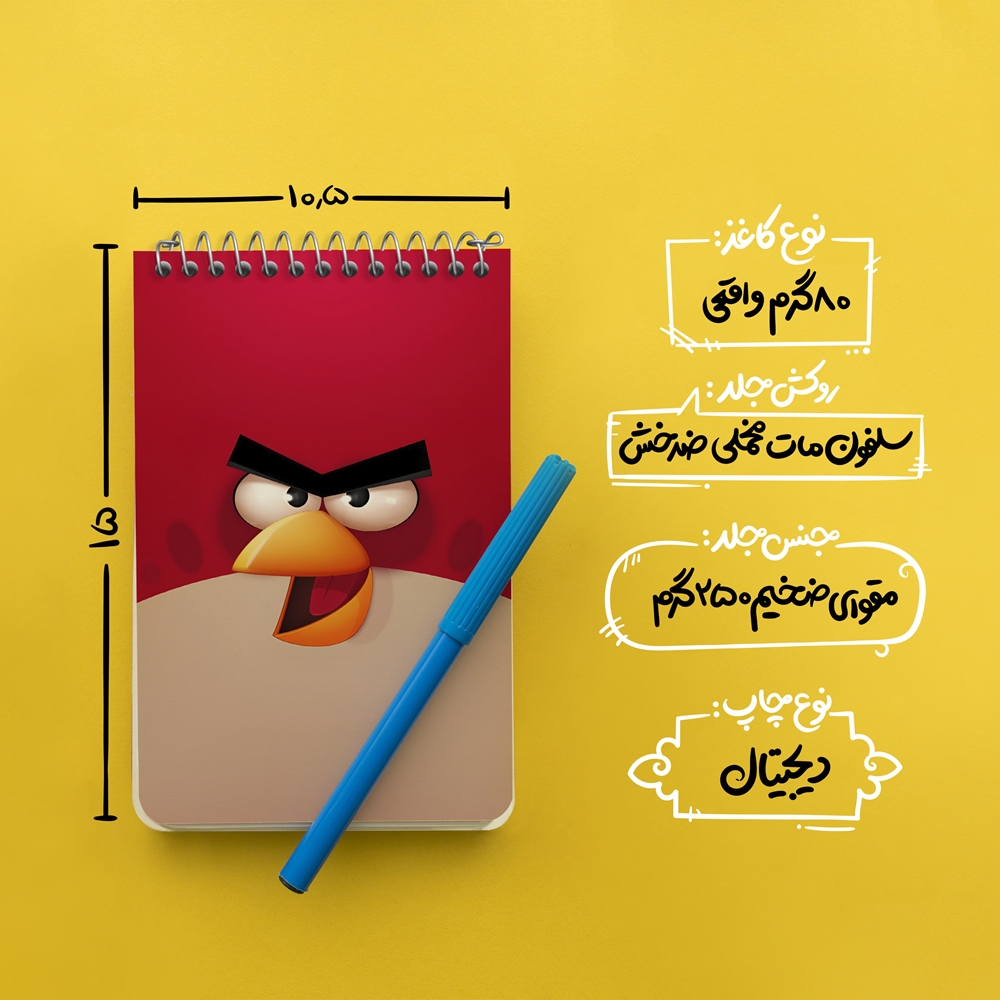 برند خندالو در زمینه تولید انواع دفاتر فانتزی و تحصیلی فعالیت میکند که به دلیل جذابیت ظاهری و طرح های متنوع طرفداران زیادی دارد. دفتر یادداشت خندالو طرح پرندگان خشمگین محصولی مناسب برای همه عاشقان لوازم التحریر است و همچنین همه کسانی که بنا به موقعیت تحصیل یا شغلشان با دفتر و نوشت افزار زیاد سر و کار دارند. در تولید دفتر یادداشت خندالو طرح پرندگان خشمگین از نوع صحافی فنر مارپیچ استفاده شده که در این نوع صحافی برگه‌ها به راحتی چرخیده و یا بیرون آورده می شوند.
