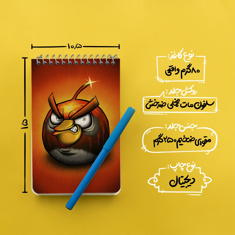 برند خندالو در زمینه تولید انواع دفاتر فانتزی و تحصیلی فعالیت میکند که به دلیل جذابیت ظاهری و طرح های متنوع طرفداران زیادی دارد. دفتر یادداشت خندالو طرح پرندگان خشمگین محصولی مناسب برای همه عاشقان لوازم التحریر است و همچنین همه کسانی که بنا به موقعیت تحصیل یا شغلشان با دفتر و نوشت افزار زیاد سر و کار دارند. در تولید دفتر یادداشت خندالو طرح پرندگان خشمگین از نوع صحافی فنر مارپیچ استفاده شده که در این نوع صحافی برگه‌ها به راحتی چرخیده و یا بیرون آورده می شوند.