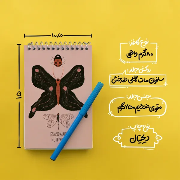 برند خندالو در زمینه تولید انواع دفاتر فانتزی و تحصیلی فعالیت میکند که به دلیل جذابیت ظاهری و طرح های متنوع طرفداران زیادی دارد. دفتر یادداشت خندالو طرح پروانه فانتزی محصولی مناسب برای همه عاشقان لوازم التحریر است و همچنین همه کسانی که بنا به موقعیت تحصیل یا شغلشان با دفتر و نوشت افزار زیاد سر و کار دارند. در تولید دفتر یادداشت خندالو طرح پروانه فانتزی از نوع صحافی فنر مارپیچ استفاده شده که در این نوع صحافی برگهها به راحتی چرخیده و یا بیرون آورده می شوند. دفتر های خندالو دارای جلد انعطاف پذیر از جنس مقوای گلاسه 250 گرم با روکش سلفون مات مخملی است که به شما امکان میدهد از دفتر خود بدون اینکه نگرانی از شکستن یا خراب شدن جلد را داشته باشید استفاده کنید و همچنین در این دفاتر از کاغذ 80 گرم با کیفیت استفاده شده که باعث میشود هنگام نوشتن به خوبی جوهر قلم بر روی صفحه نشسته و از خط خوردگیها جلوگیری کند. دفتر یادداشت خندالو با جنس و دوام مناسب، برگه های کاملاً سفید و خطوط طوسی دقیق را داراست که انسان را به نوشتن منظم و زیبا ترغیب میکند. طراحی کاملاً مناسب این دفاتر، به همراه کیفیت بالا، از آن یک محصول مورد علاقه و قابل اعتماد برای همه مقاطع تحصیلی میسازد. دفتر یادداشت خندالو طرح پروانه فانتزی انتخابی هوشمندانه و مناسب برای افرادی است که به دنبال دفتری با کیفیت و کاربرد عالی هستند. این دفتر، همراه خوبی برای شما در تمام مراحل تحصیل و کار خواهد بود و تجربهای لذتبخش از نوشتن و آموختن را به شما هدیه میدهد.