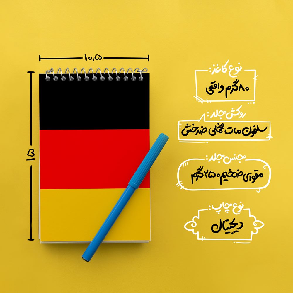 برند خندالو در زمینه تولید انواع دفاتر فانتزی و تحصیلی فعالیت میکند که به دلیل جذابیت ظاهری و طرح های متنوع طرفداران زیادی دارد. دفتر یادداشت خندالو طرح پرچم آلمان محصولی مناسب برای همه عاشقان لوازم التحریر است و همچنین همه کسانی که بنا به موقعیت تحصیل یا شغلشان با دفتر و نوشت افزار زیاد سر و کار دارند. در تولید دفتر یادداشت خندالو طرح پرچم آلمان از نوع صحافی فنر مارپیچ استفاده شده که در این نوع صحافی برگه‌ها به راحتی چرخیده و یا بیرون آورده می شوند.
