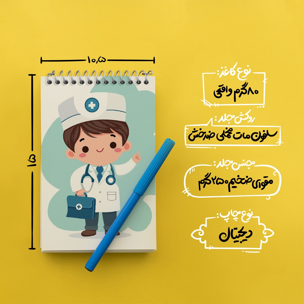 برند خندالو در زمینه تولید انواع دفاتر فانتزی و تحصیلی فعالیت میکند که به دلیل جذابیت ظاهری و طرح های متنوع طرفداران زیادی دارد. دفتر یادداشت خندالو طرح پزشک و پرستار کودکانه محصولی مناسب برای همه عاشقان لوازم التحریر است و همچنین همه کسانی که بنا به موقعیت تحصیل یا شغلشان با دفتر و نوشت افزار زیاد سر و کار دارند. در تولید دفتر یادداشت خندالو طرح پزشک و پرستار کودکانه از نوع صحافی فنر مارپیچ استفاده شده که در این نوع صحافی برگهها به راحتی چرخیده و یا بیرون آورده می شوند. دفتر های خندالو دارای جلد انعطاف پذیر از جنس مقوای گلاسه 250 گرم با روکش سلفون مات مخملی است که به شما امکان میدهد از دفتر خود بدون اینکه نگرانی از شکستن یا خراب شدن جلد را داشته باشید استفاده کنید و همچنین در این دفاتر از کاغذ 80 گرم با کیفیت استفاده شده که باعث میشود هنگام نوشتن به خوبی جوهر قلم بر روی صفحه نشسته و از خط خوردگیها جلوگیری کند. دفتر یادداشت خندالو با جنس و دوام مناسب، برگه های کاملاً سفید و خطوط طوسی دقیق را داراست که انسان را به نوشتن منظم و زیبا ترغیب میکند. طراحی کاملاً مناسب این دفاتر، به همراه کیفیت بالا، از آن یک محصول مورد علاقه و قابل اعتماد برای همه مقاطع تحصیلی میسازد. دفتر یادداشت خندالو طرح پزشک و پرستار کودکانه انتخابی هوشمندانه و مناسب برای افرادی است که به دنبال دفتری با کیفیت و کاربرد عالی هستند. این دفتر، همراه خوبی برای شما در تمام مراحل تحصیل و کار خواهد بود و تجربهای لذتبخش از نوشتن و آموختن را به شما هدیه میدهد.