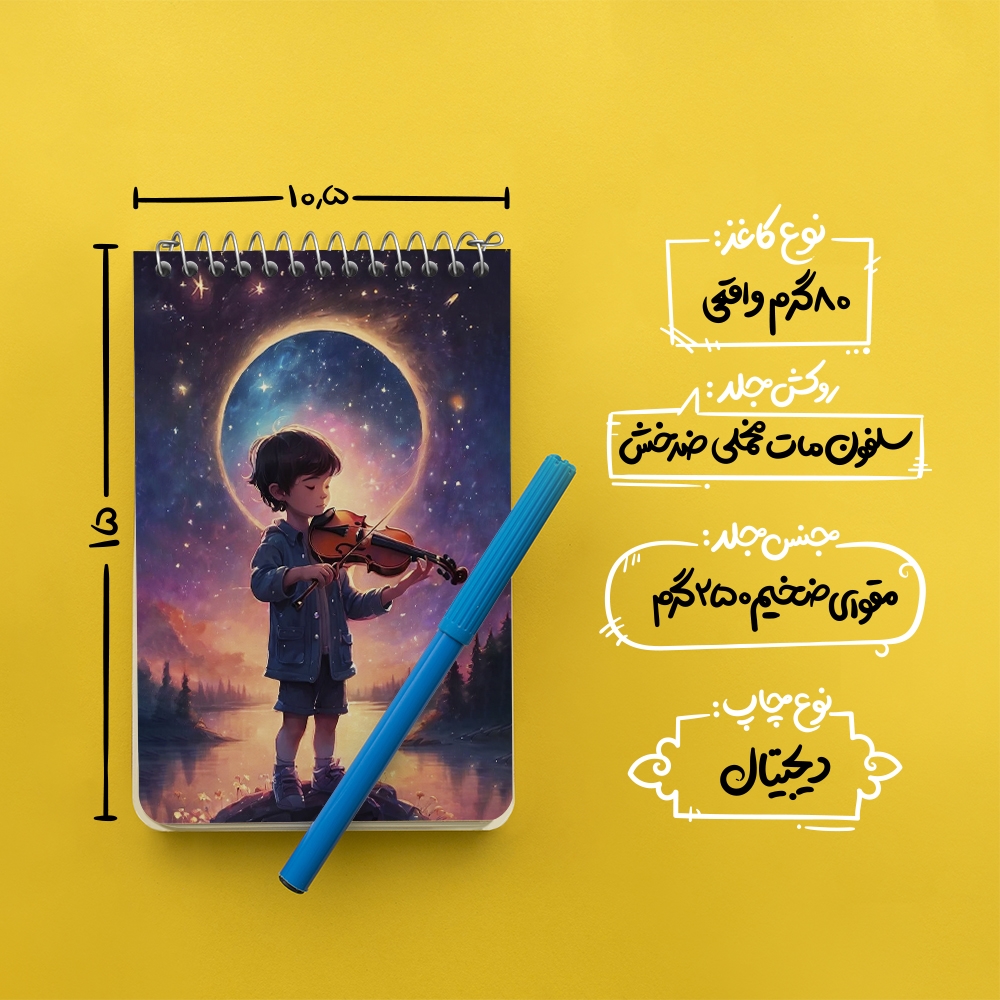 برند خندالو در زمینه تولید انواع دفاتر فانتزی و تحصیلی فعالیت میکند که به دلیل جذابیت ظاهری و طرح های متنوع طرفداران زیادی دارد. دفتر یادداشت خندالو طرح پسر نوازنده ویولن محصولی مناسب برای همه عاشقان لوازم التحریر است و همچنین همه کسانی که بنا به موقعیت تحصیل یا شغلشان با دفتر و نوشت افزار زیاد سر و کار دارند. در تولید دفتر یادداشت خندالو طرح پسر نوازنده ویولن از نوع صحافی فنر مارپیچ استفاده شده که در این نوع صحافی برگهها به راحتی چرخیده و یا بیرون آورده می شوند. دفتر های خندالو دارای جلد انعطاف پذیر از جنس مقوای گلاسه 250 گرم با روکش سلفون مات مخملی است که به شما امکان میدهد از دفتر خود بدون اینکه نگرانی از شکستن یا خراب شدن جلد را داشته باشید استفاده کنید و همچنین در این دفاتر از کاغذ 80 گرم با کیفیت استفاده شده که باعث میشود هنگام نوشتن به خوبی جوهر قلم بر روی صفحه نشسته و از خط خوردگیها جلوگیری کند. دفتر یادداشت خندالو با جنس و دوام مناسب، برگه های کاملاً سفید و خطوط طوسی دقیق را داراست که انسان را به نوشتن منظم و زیبا ترغیب میکند. طراحی کاملاً مناسب این دفاتر، به همراه کیفیت بالا، از آن یک محصول مورد علاقه و قابل اعتماد برای همه مقاطع تحصیلی میسازد. دفتر یادداشت خندالو طرح پسر نوازنده ویولن انتخابی هوشمندانه و مناسب برای افرادی است که به دنبال دفتری با کیفیت و کاربرد عالی هستند. این دفتر، همراه خوبی برای شما در تمام مراحل تحصیل و کار خواهد بود و تجربهای لذتبخش از نوشتن و آموختن را به شما هدیه میدهد.