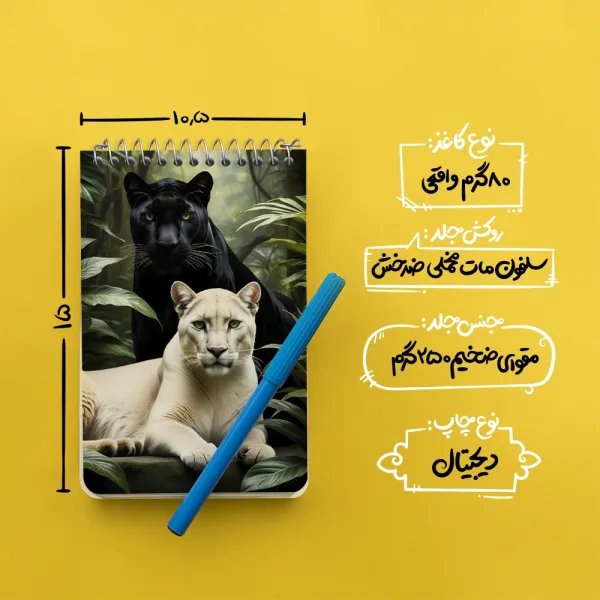 برند خندالو در زمینه تولید انواع دفاتر فانتزی و تحصیلی فعالیت میکند که به دلیل جذابیت ظاهری و طرح های متنوع طرفداران زیادی دارد. دفتر یادداشت خندالو طرح پلنگ سیاه و سفید محصولی مناسب برای همه عاشقان لوازم التحریر است و همچنین همه کسانی که بنا به موقعیت تحصیل یا شغلشان با دفتر و نوشت افزار زیاد سر و کار دارند. در تولید دفتر یادداشت خندالو طرح پلنگ سیاه و سفید از نوع صحافی فنر مارپیچ استفاده شده که در این نوع صحافی برگه‌ها به راحتی چرخیده و یا بیرون آورده می شوند.