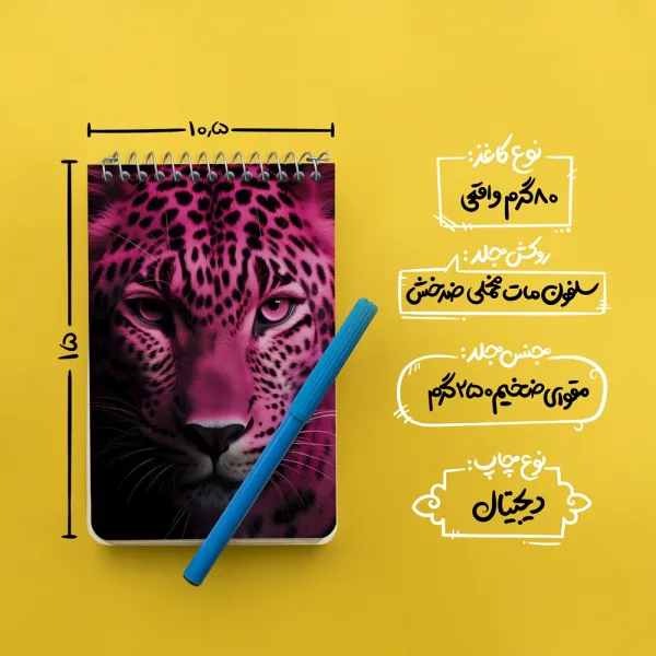 برند خندالو در زمینه تولید انواع دفاتر فانتزی و تحصیلی فعالیت میکند که به دلیل جذابیت ظاهری و طرح های متنوع طرفداران زیادی دارد. دفتر یادداشت خندالو طرح پلنگ محصولی مناسب برای همه عاشقان لوازم التحریر است و همچنین همه کسانی که بنا به موقعیت تحصیل یا شغلشان با دفتر و نوشت افزار زیاد سر و کار دارند. در تولید دفتر یادداشت خندالو طرح پلنگ از نوع صحافی فنر مارپیچ استفاده شده که در این نوع صحافی برگه‌ها به راحتی چرخیده و یا بیرون آورده می شوند.