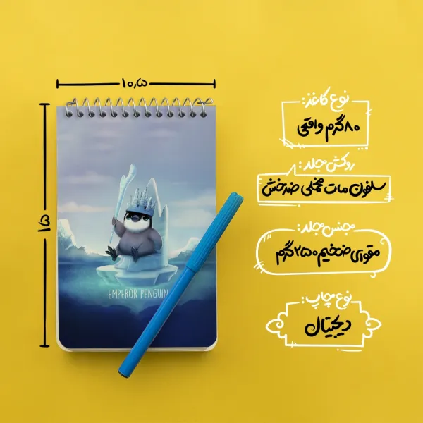 برند خندالو در زمینه تولید انواع دفاتر فانتزی و تحصیلی فعالیت میکند که به دلیل جذابیت ظاهری و طرح های متنوع طرفداران زیادی دارد. دفتر یادداشت خندالو طرح پنگوئن امپراتور محصولی مناسب برای همه عاشقان لوازم التحریر است و همچنین همه کسانی که بنا به موقعیت تحصیل یا شغلشان با دفتر و نوشت افزار زیاد سر و کار دارند. در تولید دفتر یادداشت خندالو طرح پنگوئن امپراتور از نوع صحافی فنر مارپیچ استفاده شده که در این نوع صحافی برگهها به راحتی چرخیده و یا بیرون آورده می شوند. دفتر های خندالو دارای جلد انعطاف پذیر از جنس مقوای گلاسه 250 گرم با روکش سلفون مات مخملی است که به شما امکان میدهد از دفتر خود بدون اینکه نگرانی از شکستن یا خراب شدن جلد را داشته باشید استفاده کنید و همچنین در این دفاتر از کاغذ 80 گرم با کیفیت استفاده شده که باعث میشود هنگام نوشتن به خوبی جوهر قلم بر روی صفحه نشسته و از خط خوردگیها جلوگیری کند. دفتر یادداشت خندالو با جنس و دوام مناسب، برگه های کاملاً سفید و خطوط طوسی دقیق را داراست که انسان را به نوشتن منظم و زیبا ترغیب میکند. طراحی کاملاً مناسب این دفاتر، به همراه کیفیت بالا، از آن یک محصول مورد علاقه و قابل اعتماد برای همه مقاطع تحصیلی میسازد. دفتر یادداشت خندالو طرح پنگوئن امپراتور انتخابی هوشمندانه و مناسب برای افرادی است که به دنبال دفتری با کیفیت و کاربرد عالی هستند. این دفتر، همراه خوبی برای شما در تمام مراحل تحصیل و کار خواهد بود و تجربهای لذتبخش از نوشتن و آموختن را به شما هدیه میدهد.