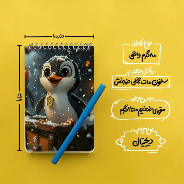 برند خندالو در زمینه تولید انواع دفاتر فانتزی و تحصیلی فعالیت میکند که به دلیل جذابیت ظاهری و طرح های متنوع طرفداران زیادی دارد. دفتر یادداشت خندالو طرح پنگوئن محصولی مناسب برای همه عاشقان لوازم التحریر است و همچنین همه کسانی که بنا به موقعیت تحصیل یا شغلشان با دفتر و نوشت افزار زیاد سر و کار دارند. در تولید دفتر یادداشت خندالو طرح پنگوئن از نوع صحافی فنر مارپیچ استفاده شده که در این نوع صحافی برگه‌ها به راحتی چرخیده و یا بیرون آورده می شوند.