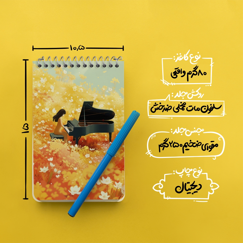برند خندالو در زمینه تولید انواع دفاتر فانتزی و تحصیلی فعالیت میکند که به دلیل جذابیت ظاهری و طرح های متنوع طرفداران زیادی دارد. دفتر یادداشت خندالو طرح پیانو محصولی مناسب برای همه عاشقان لوازم التحریر است و همچنین همه کسانی که بنا به موقعیت تحصیل یا شغلشان با دفتر و نوشت افزار زیاد سر و کار دارند. در تولید دفتر یادداشت خندالو طرح پیانو از نوع صحافی فنر مارپیچ استفاده شده که در این نوع صحافی برگهها به راحتی چرخیده و یا بیرون آورده می شوند. دفتر های خندالو دارای جلد انعطاف پذیر از جنس مقوای گلاسه 250 گرم با روکش سلفون مات مخملی است که به شما امکان میدهد از دفتر خود بدون اینکه نگرانی از شکستن یا خراب شدن جلد را داشته باشید استفاده کنید و همچنین در این دفاتر از کاغذ 80 گرم با کیفیت استفاده شده که باعث میشود هنگام نوشتن به خوبی جوهر قلم بر روی صفحه نشسته و از خط خوردگیها جلوگیری کند. دفتر یادداشت خندالو با جنس و دوام مناسب، برگه های کاملاً سفید و خطوط طوسی دقیق را داراست که انسان را به نوشتن منظم و زیبا ترغیب میکند. طراحی کاملاً مناسب این دفاتر، به همراه کیفیت بالا، از آن یک محصول مورد علاقه و قابل اعتماد برای همه مقاطع تحصیلی میسازد. دفتر یادداشت خندالو طرح پیانو انتخابی هوشمندانه و مناسب برای افرادی است که به دنبال دفتری با کیفیت و کاربرد عالی هستند. این دفتر، همراه خوبی برای شما در تمام مراحل تحصیل و کار خواهد بود و تجربهای لذتبخش از نوشتن و آموختن را به شما هدیه میدهد.