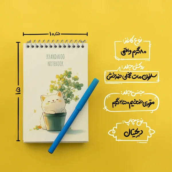 برند خندالو در زمینه تولید انواع دفاتر فانتزی و تحصیلی فعالیت میکند که به دلیل جذابیت ظاهری و طرح های متنوع طرفداران زیادی دارد. دفتر یادداشت خندالو طرح پیشی کیوت محصولی مناسب برای همه عاشقان لوازم التحریر است و همچنین همه کسانی که بنا به موقعیت تحصیل یا شغلشان با دفتر و نوشت افزار زیاد سر و کار دارند. در تولید دفتر یادداشت خندالو طرح پیشی کیوت از نوع صحافی فنر مارپیچ استفاده شده که در این نوع صحافی برگهها به راحتی چرخیده و یا بیرون آورده می شوند. دفتر های خندالو دارای جلد انعطاف پذیر از جنس مقوای گلاسه 250 گرم با روکش سلفون مات مخملی است که به شما امکان میدهد از دفتر خود بدون اینکه نگرانی از شکستن یا خراب شدن جلد را داشته باشید استفاده کنید و همچنین در این دفاتر از کاغذ 80 گرم با کیفیت استفاده شده که باعث میشود هنگام نوشتن به خوبی جوهر قلم بر روی صفحه نشسته و از خط خوردگیها جلوگیری کند. دفتر یادداشت خندالو با جنس و دوام مناسب، برگه های کاملاً سفید و خطوط طوسی دقیق را داراست که انسان را به نوشتن منظم و زیبا ترغیب میکند. طراحی کاملاً مناسب این دفاتر، به همراه کیفیت بالا، از آن یک محصول مورد علاقه و قابل اعتماد برای همه مقاطع تحصیلی میسازد. دفتر یادداشت خندالو طرح پیشی کیوت انتخابی هوشمندانه و مناسب برای افرادی است که به دنبال دفتری با کیفیت و کاربرد عالی هستند. این دفتر، همراه خوبی برای شما در تمام مراحل تحصیل و کار خواهد بود و تجربهای لذتبخش از نوشتن و آموختن را به شما هدیه میدهد.