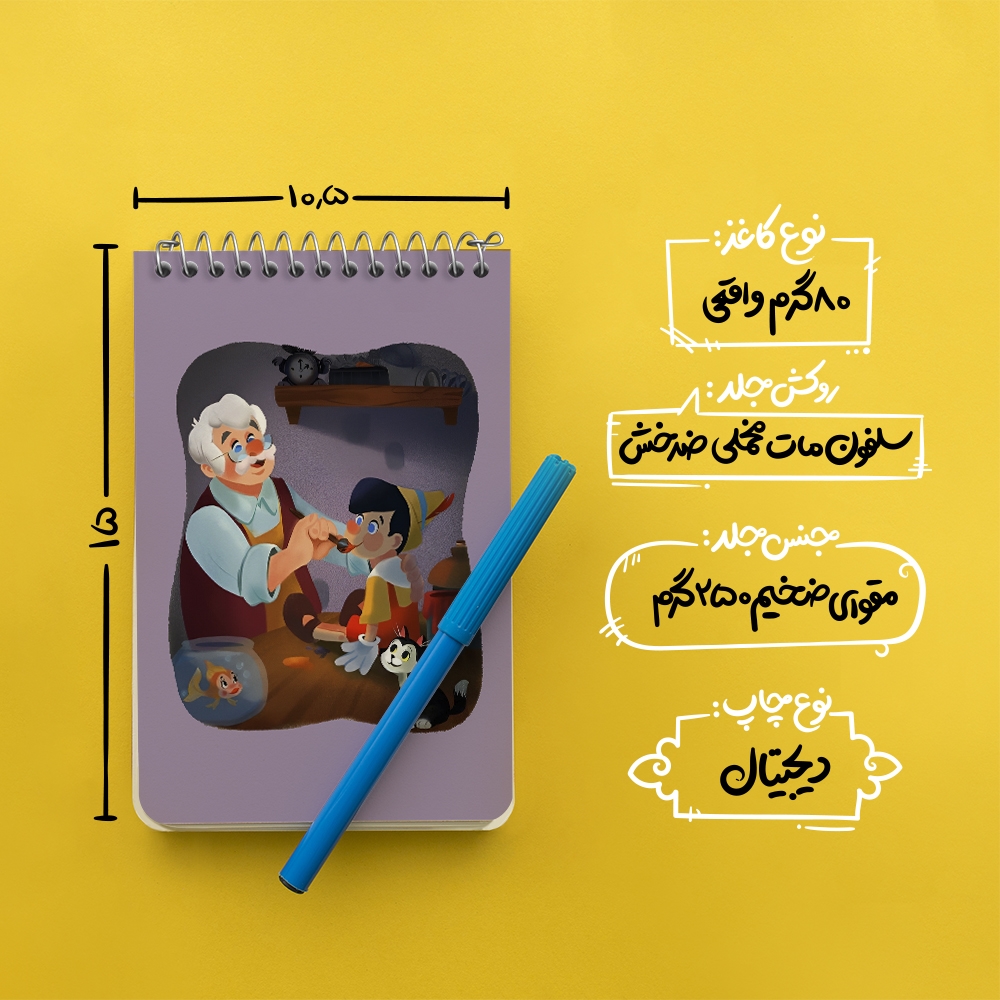 برند خندالو در زمینه تولید انواع دفاتر فانتزی و تحصیلی فعالیت میکند که به دلیل جذابیت ظاهری و طرح های متنوع طرفداران زیادی دارد. دفتر یادداشت خندالو طرح پینوکیو محصولی مناسب برای همه عاشقان لوازم التحریر است و همچنین همه کسانی که بنا به موقعیت تحصیل یا شغلشان با دفتر و نوشت افزار زیاد سر و کار دارند. در تولید دفتر یادداشت خندالو طرح پینوکیو از نوع صحافی فنر مارپیچ استفاده شده که در این نوع صحافی برگهها به راحتی چرخیده و یا بیرون آورده می شوند. دفتر های خندالو دارای جلد انعطاف پذیر از جنس مقوای گلاسه 250 گرم با روکش سلفون مات مخملی است که به شما امکان میدهد از دفتر خود بدون اینکه نگرانی از شکستن یا خراب شدن جلد را داشته باشید استفاده کنید و همچنین در این دفاتر از کاغذ 80 گرم با کیفیت استفاده شده که باعث میشود هنگام نوشتن به خوبی جوهر قلم بر روی صفحه نشسته و از خط خوردگیها جلوگیری کند. دفتر یادداشت خندالو با جنس و دوام مناسب، برگه های کاملاً سفید و خطوط طوسی دقیق را داراست که انسان را به نوشتن منظم و زیبا ترغیب میکند. طراحی کاملاً مناسب این دفاتر، به همراه کیفیت بالا، از آن یک محصول مورد علاقه و قابل اعتماد برای همه مقاطع تحصیلی میسازد. دفتر یادداشت خندالو طرح پینوکیو انتخابی هوشمندانه و مناسب برای افرادی است که به دنبال دفتری با کیفیت و کاربرد عالی هستند. این دفتر، همراه خوبی برای شما در تمام مراحل تحصیل و کار خواهد بود و تجربهای لذتبخش از نوشتن و آموختن را به شما هدیه میدهد.