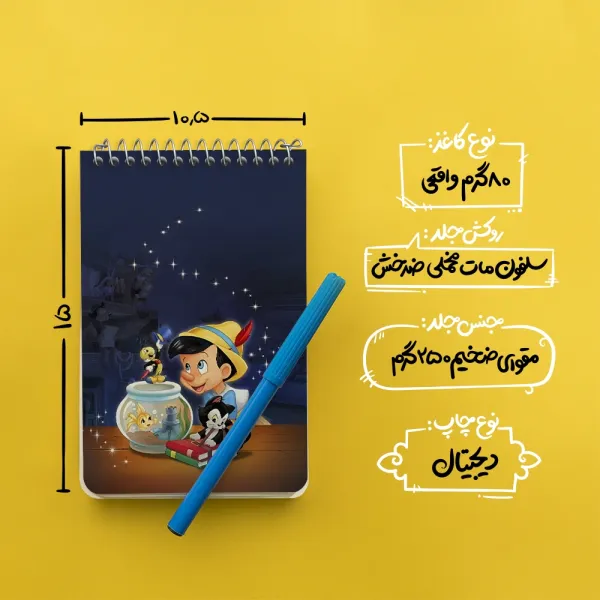 برند خندالو در زمینه تولید انواع دفاتر فانتزی و تحصیلی فعالیت میکند که به دلیل جذابیت ظاهری و طرح های متنوع طرفداران زیادی دارد. دفتر یادداشت خندالو طرح پینوکیو محصولی مناسب برای همه عاشقان لوازم التحریر است و همچنین همه کسانی که بنا به موقعیت تحصیل یا شغلشان با دفتر و نوشت افزار زیاد سر و کار دارند. در تولید دفتر یادداشت خندالو طرح پینوکیو از نوع صحافی فنر مارپیچ استفاده شده که در این نوع صحافی برگه‌ها به راحتی چرخیده و یا بیرون آورده می شوند.