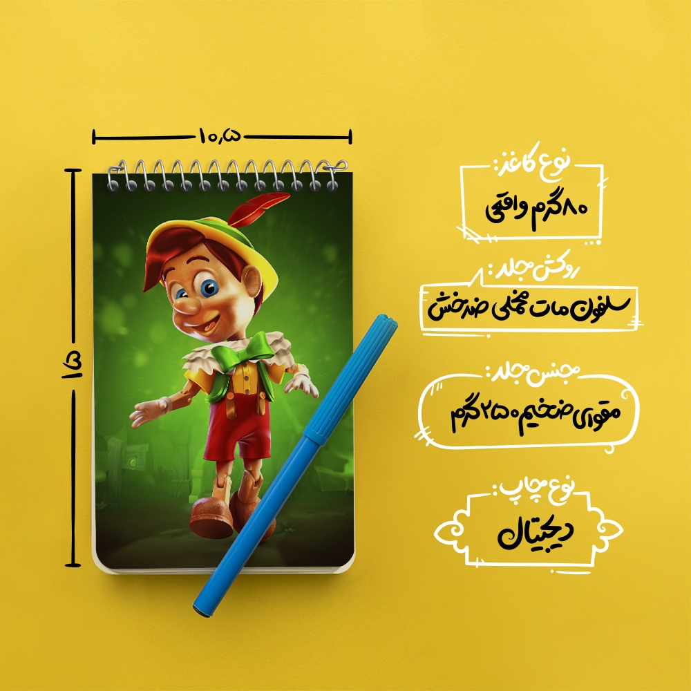 برند خندالو در زمینه تولید انواع دفاتر فانتزی و تحصیلی فعالیت میکند که به دلیل جذابیت ظاهری و طرح های متنوع طرفداران زیادی دارد. دفتر یادداشت خندالو طرح پینوکیو محصولی مناسب برای همه عاشقان لوازم التحریر است و همچنین همه کسانی که بنا به موقعیت تحصیل یا شغلشان با دفتر و نوشت افزار زیاد سر و کار دارند. در تولید دفتر یادداشت خندالو طرح پینوکیو از نوع صحافی فنر مارپیچ استفاده شده که در این نوع صحافی برگهها به راحتی چرخیده و یا بیرون آورده می شوند. دفتر های خندالو دارای جلد انعطاف پذیر از جنس مقوای گلاسه 250 گرم با روکش سلفون مات مخملی است که به شما امکان میدهد از دفتر خود بدون اینکه نگرانی از شکستن یا خراب شدن جلد را داشته باشید استفاده کنید و همچنین در این دفاتر از کاغذ 80 گرم با کیفیت استفاده شده که باعث میشود هنگام نوشتن به خوبی جوهر قلم بر روی صفحه نشسته و از خط خوردگیها جلوگیری کند. دفتر یادداشت خندالو با جنس و دوام مناسب، برگه های کاملاً سفید و خطوط طوسی دقیق را داراست که انسان را به نوشتن منظم و زیبا ترغیب میکند. طراحی کاملاً مناسب این دفاتر، به همراه کیفیت بالا، از آن یک محصول مورد علاقه و قابل اعتماد برای همه مقاطع تحصیلی میسازد. دفتر یادداشت خندالو طرح پینوکیو انتخابی هوشمندانه و مناسب برای افرادی است که به دنبال دفتری با کیفیت و کاربرد عالی هستند. این دفتر، همراه خوبی برای شما در تمام مراحل تحصیل و کار خواهد بود و تجربهای لذتبخش از نوشتن و آموختن را به شما هدیه میدهد.