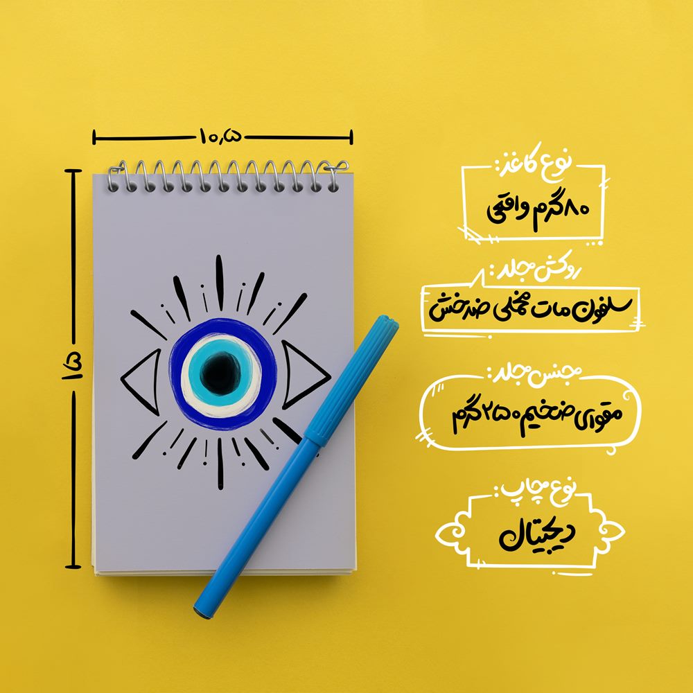 برند خندالو در زمینه تولید انواع دفاتر فانتزی و تحصیلی فعالیت میکند که به دلیل جذابیت ظاهری و طرح های متنوع طرفداران زیادی دارد. دفتر یادداشت خندالو طرح چشم نظر محصولی مناسب برای همه عاشقان لوازم التحریر است و همچنین همه کسانی که بنا به موقعیت تحصیل یا شغلشان با دفتر و نوشت افزار زیاد سر و کار دارند. در تولید دفتر یادداشت خندالو طرح چشم نظر از نوع صحافی فنر مارپیچ استفاده شده که در این نوع صحافی برگه‌ها به راحتی چرخیده و یا بیرون آورده می شوند.
