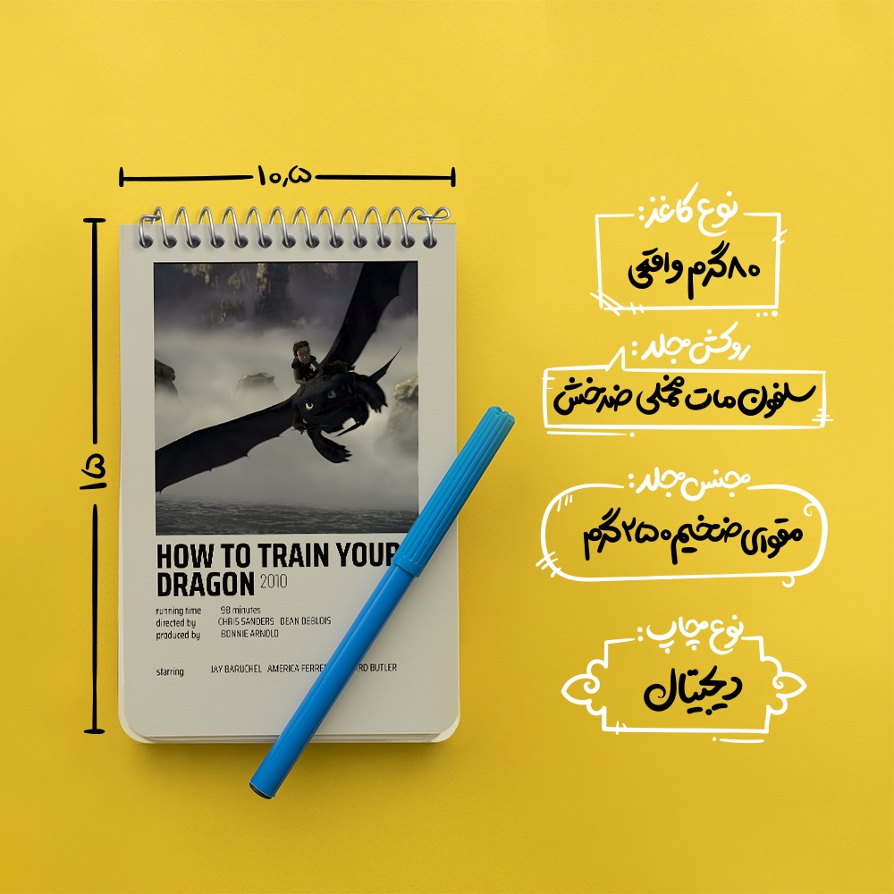 برند خندالو در زمینه تولید انواع دفاتر فانتزی و تحصیلی فعالیت میکند که به دلیل جذابیت ظاهری و طرح های متنوع طرفداران زیادی دارد. دفتر یادداشت خندالو طرح چگونه اژدهای خود را تربیت کنیم محصولی مناسب برای همه عاشقان لوازم التحریر است و همچنین همه کسانی که بنا به موقعیت تحصیل یا شغلشان با دفتر و نوشت افزار زیاد سر و کار دارند. در تولید دفتر یادداشت خندالو طرح چگونه اژدهای خود را تربیت کنیم از نوع صحافی فنر مارپیچ استفاده شده که در این نوع صحافی برگهها به راحتی چرخیده و یا بیرون آورده می شوند. دفتر های خندالو دارای جلد انعطاف پذیر از جنس مقوای گلاسه 250 گرم با روکش سلفون مات مخملی است که به شما امکان میدهد از دفتر خود بدون اینکه نگرانی از شکستن یا خراب شدن جلد را داشته باشید استفاده کنید و همچنین در این دفاتر از کاغذ 80 گرم با کیفیت استفاده شده که باعث میشود هنگام نوشتن به خوبی جوهر قلم بر روی صفحه نشسته و از خط خوردگیها جلوگیری کند. دفتر یادداشت خندالو با جنس و دوام مناسب، برگه های کاملاً سفید و خطوط طوسی دقیق را داراست که انسان را به نوشتن منظم و زیبا ترغیب میکند. طراحی کاملاً مناسب این دفاتر، به همراه کیفیت بالا، از آن یک محصول مورد علاقه و قابل اعتماد برای همه مقاطع تحصیلی میسازد. دفتر یادداشت خندالو طرح چگونه اژدهای خود را تربیت کنیم انتخابی هوشمندانه و مناسب برای افرادی است که به دنبال دفتری با کیفیت و کاربرد عالی هستند. این دفتر، همراه خوبی برای شما در تمام مراحل تحصیل و کار خواهد بود و تجربهای لذتبخش از نوشتن و آموختن را به شما هدیه میدهد.