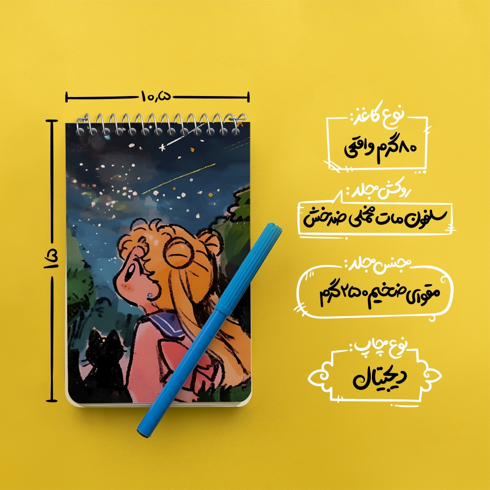 برند خندالو در زمینه تولید انواع دفاتر فانتزی و تحصیلی فعالیت میکند که به دلیل جذابیت ظاهری و طرح های متنوع طرفداران زیادی دارد. دفتر یادداشت خندالو طرح چیبیوسا انیمه سیلور مون (Sailor Moon) محصولی مناسب برای همه عاشقان لوازم التحریر است و همچنین همه کسانی که بنا به موقعیت تحصیل یا شغلشان با دفتر و نوشت افزار زیاد سر و کار دارند. در تولید دفتر یادداشت خندالو طرح چیبیوسا انیمه سیلور مون (Sailor Moon) از نوع صحافی فنر مارپیچ استفاده شده که در این نوع صحافی برگهها به راحتی چرخیده و یا بیرون آورده می شوند. دفتر های خندالو دارای جلد انعطاف پذیر از جنس مقوای گلاسه 250 گرم با روکش سلفون مات مخملی است که به شما امکان میدهد از دفتر خود بدون اینکه نگرانی از شکستن یا خراب شدن جلد را داشته باشید استفاده کنید و همچنین در این دفاتر از کاغذ 80 گرم با کیفیت استفاده شده که باعث میشود هنگام نوشتن به خوبی جوهر قلم بر روی صفحه نشسته و از خط خوردگیها جلوگیری کند. دفتر یادداشت خندالو با جنس و دوام مناسب، برگه های کاملاً سفید و خطوط طوسی دقیق را داراست که انسان را به نوشتن منظم و زیبا ترغیب میکند. طراحی کاملاً مناسب این دفاتر، به همراه کیفیت بالا، از آن یک محصول مورد علاقه و قابل اعتماد برای همه مقاطع تحصیلی میسازد. دفتر یادداشت خندالو طرح چیبیوسا انیمه سیلور مون (Sailor Moon) انتخابی هوشمندانه و مناسب برای افرادی است که به دنبال دفتری با کیفیت و کاربرد عالی هستند. این دفتر، همراه خوبی برای شما در تمام مراحل تحصیل و کار خواهد بود و تجربهای لذتبخش از نوشتن و آموختن را به شما هدیه میدهد.