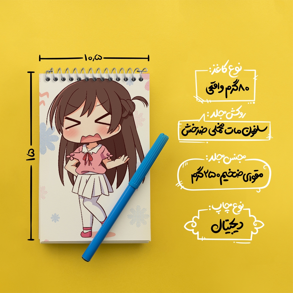 برند خندالو در زمینه تولید انواع دفاتر فانتزی و تحصیلی فعالیت میکند که به دلیل جذابیت ظاهری و طرح های متنوع طرفداران زیادی دارد. دفتر یادداشت خندالو طرح چیزورو انیمه کانوجو اوکاری محصولی مناسب برای همه عاشقان لوازم التحریر است و همچنین همه کسانی که بنا به موقعیت تحصیل یا شغلشان با دفتر و نوشت افزار زیاد سر و کار دارند. در تولید دفتر یادداشت خندالو طرح چیزورو انیمه کانوجو اوکاری از نوع صحافی فنر مارپیچ استفاده شده که در این نوع صحافی برگهها به راحتی چرخیده و یا بیرون آورده می شوند. دفتر های خندالو دارای جلد انعطاف پذیر از جنس مقوای گلاسه 250 گرم با روکش سلفون مات مخملی است که به شما امکان میدهد از دفتر خود بدون اینکه نگرانی از شکستن یا خراب شدن جلد را داشته باشید استفاده کنید و همچنین در این دفاتر از کاغذ 80 گرم با کیفیت استفاده شده که باعث میشود هنگام نوشتن به خوبی جوهر قلم بر روی صفحه نشسته و از خط خوردگیها جلوگیری کند. دفتر یادداشت خندالو با جنس و دوام مناسب، برگه های کاملاً سفید و خطوط طوسی دقیق را داراست که انسان را به نوشتن منظم و زیبا ترغیب میکند. طراحی کاملاً مناسب این دفاتر، به همراه کیفیت بالا، از آن یک محصول مورد علاقه و قابل اعتماد برای همه مقاطع تحصیلی میسازد. دفتر یادداشت خندالو طرح چیزورو انیمه کانوجو اوکاری انتخابی هوشمندانه و مناسب برای افرادی است که به دنبال دفتری با کیفیت و کاربرد عالی هستند. این دفتر، همراه خوبی برای شما در تمام مراحل تحصیل و کار خواهد بود و تجربهای لذتبخش از نوشتن و آموختن را به شما هدیه میدهد.