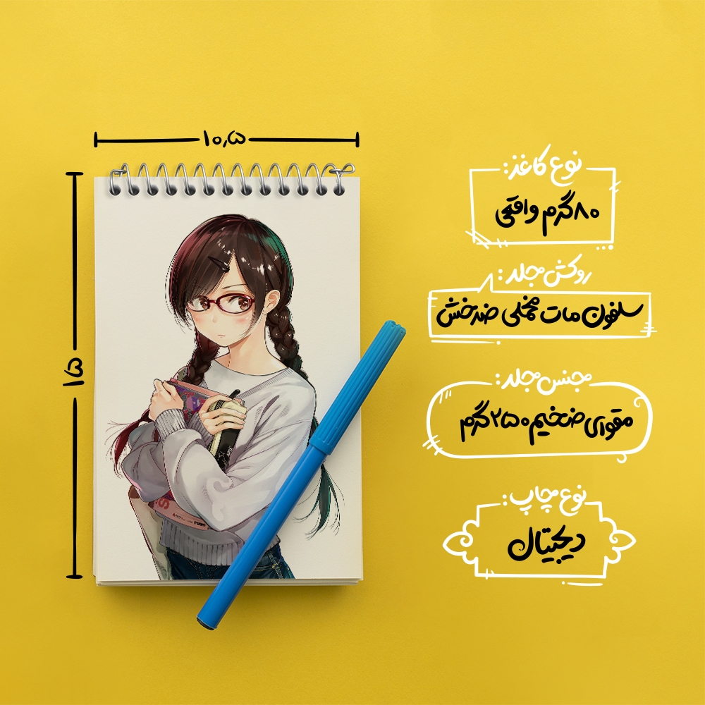 برند خندالو در زمینه تولید انواع دفاتر فانتزی و تحصیلی فعالیت میکند که به دلیل جذابیت ظاهری و طرح های متنوع طرفداران زیادی دارد. دفتر یادداشت خندالو طرح چیزورو انیمه کانوجو اوکاری محصولی مناسب برای همه عاشقان لوازم التحریر است و همچنین همه کسانی که بنا به موقعیت تحصیل یا شغلشان با دفتر و نوشت افزار زیاد سر و کار دارند. در تولید دفتر یادداشت خندالو طرح چیزورو انیمه کانوجو اوکاری از نوع صحافی فنر مارپیچ استفاده شده که در این نوع صحافی برگهها به راحتی چرخیده و یا بیرون آورده می شوند. دفتر های خندالو دارای جلد انعطاف پذیر از جنس مقوای گلاسه 250 گرم با روکش سلفون مات مخملی است که به شما امکان میدهد از دفتر خود بدون اینکه نگرانی از شکستن یا خراب شدن جلد را داشته باشید استفاده کنید و همچنین در این دفاتر از کاغذ 80 گرم با کیفیت استفاده شده که باعث میشود هنگام نوشتن به خوبی جوهر قلم بر روی صفحه نشسته و از خط خوردگیها جلوگیری کند. دفتر یادداشت خندالو با جنس و دوام مناسب، برگه های کاملاً سفید و خطوط طوسی دقیق را داراست که انسان را به نوشتن منظم و زیبا ترغیب میکند. طراحی کاملاً مناسب این دفاتر، به همراه کیفیت بالا، از آن یک محصول مورد علاقه و قابل اعتماد برای همه مقاطع تحصیلی میسازد. دفتر یادداشت خندالو طرح چیزورو انیمه کانوجو اوکاری انتخابی هوشمندانه و مناسب برای افرادی است که به دنبال دفتری با کیفیت و کاربرد عالی هستند. این دفتر، همراه خوبی برای شما در تمام مراحل تحصیل و کار خواهد بود و تجربهای لذتبخش از نوشتن و آموختن را به شما هدیه میدهد.