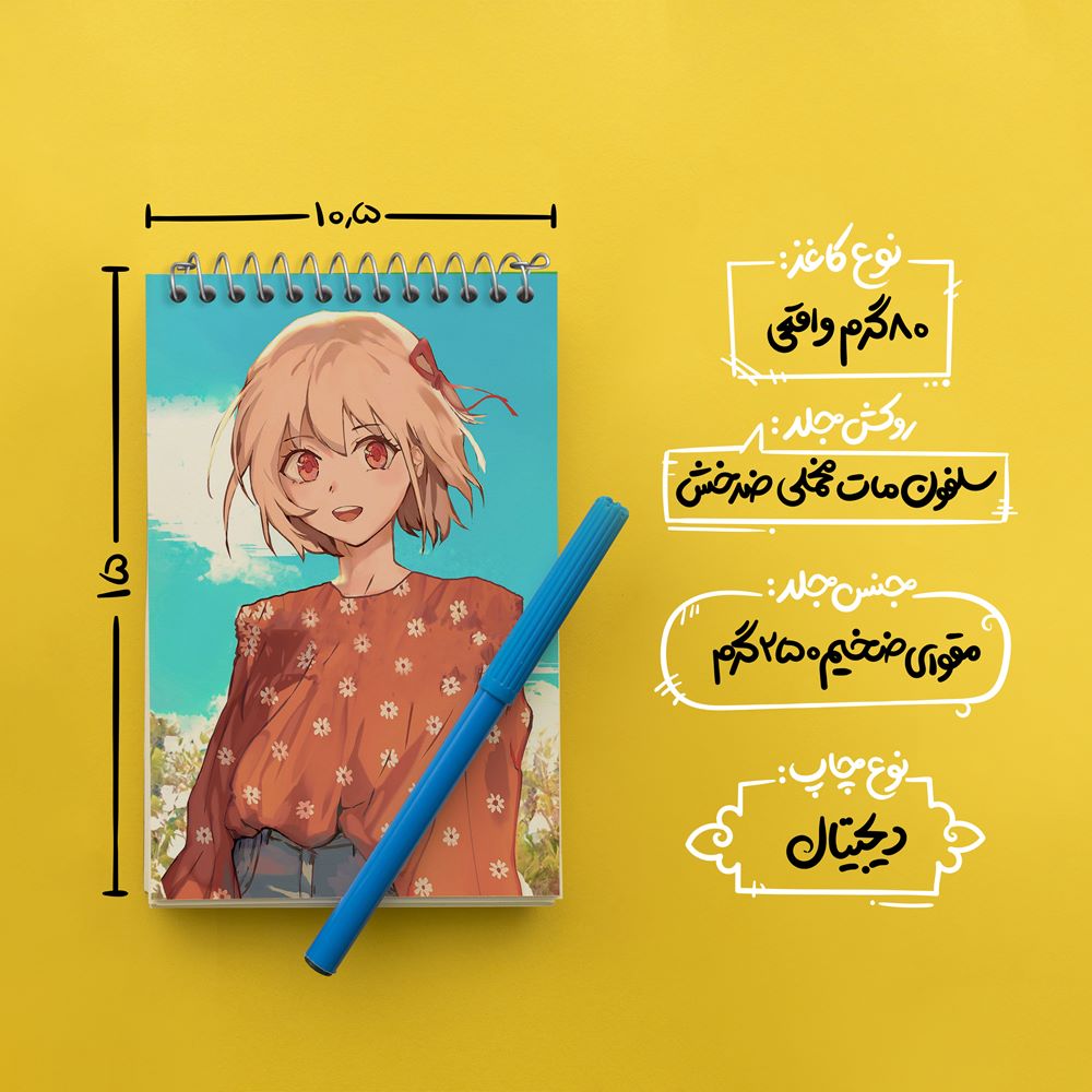 برند خندالو در زمینه تولید انواع دفاتر فانتزی و تحصیلی فعالیت میکند که به دلیل جذابیت ظاهری و طرح های متنوع طرفداران زیادی دارد. دفتر یادداشت خندالو طرح چیساتو انیمه لیکوریس ریکویل Lycoris Recoil محصولی مناسب برای همه عاشقان لوازم التحریر است و همچنین همه کسانی که بنا به موقعیت تحصیل یا شغلشان با دفتر و نوشت افزار زیاد سر و کار دارند. در تولید دفتر یادداشت خندالو طرح چیساتو انیمه لیکوریس ریکویل Lycoris Recoil از نوع صحافی فنر مارپیچ استفاده شده که در این نوع صحافی برگه‌ها به راحتی چرخیده و یا بیرون آورده می شوند.