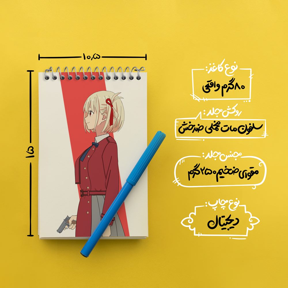 برند خندالو در زمینه تولید انواع دفاتر فانتزی و تحصیلی فعالیت میکند که به دلیل جذابیت ظاهری و طرح های متنوع طرفداران زیادی دارد. دفتر یادداشت خندالو طرح چیساتو انیمه لیکوریس ریکویل Lycoris Recoil محصولی مناسب برای همه عاشقان لوازم التحریر است و همچنین همه کسانی که بنا به موقعیت تحصیل یا شغلشان با دفتر و نوشت افزار زیاد سر و کار دارند. در تولید دفتر یادداشت خندالو طرح چیساتو انیمه لیکوریس ریکویل Lycoris Recoil از نوع صحافی فنر مارپیچ استفاده شده که در این نوع صحافی برگهها به راحتی چرخیده و یا بیرون آورده می شوند. دفتر های خندالو دارای جلد انعطاف پذیر از جنس مقوای گلاسه 250 گرم با روکش سلفون مات مخملی است که به شما امکان میدهد از دفتر خود بدون اینکه نگرانی از شکستن یا خراب شدن جلد را داشته باشید استفاده کنید و همچنین در این دفاتر از کاغذ 80 گرم با کیفیت استفاده شده که باعث میشود هنگام نوشتن به خوبی جوهر قلم بر روی صفحه نشسته و از خط خوردگیها جلوگیری کند. دفتر یادداشت خندالو با جنس و دوام مناسب، برگه های کاملاً سفید و خطوط طوسی دقیق را داراست که انسان را به نوشتن منظم و زیبا ترغیب میکند. طراحی کاملاً مناسب این دفاتر، به همراه کیفیت بالا، از آن یک محصول مورد علاقه و قابل اعتماد برای همه مقاطع تحصیلی میسازد. دفتر یادداشت خندالو طرح چیساتو انیمه لیکوریس ریکویل Lycoris Recoil انتخابی هوشمندانه و مناسب برای افرادی است که به دنبال دفتری با کیفیت و کاربرد عالی هستند. این دفتر، همراه خوبی برای شما در تمام مراحل تحصیل و کار خواهد بود و تجربهای لذتبخش از نوشتن و آموختن را به شما هدیه میدهد.