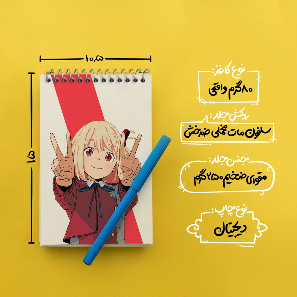 برند خندالو در زمینه تولید انواع دفاتر فانتزی و تحصیلی فعالیت میکند که به دلیل جذابیت ظاهری و طرح های متنوع طرفداران زیادی دارد. دفتر یادداشت خندالو طرح چیساتو انیمه لیکوریس ریکویل Lycoris Recoil محصولی مناسب برای همه عاشقان لوازم التحریر است و همچنین همه کسانی که بنا به موقعیت تحصیل یا شغلشان با دفتر و نوشت افزار زیاد سر و کار دارند. در تولید دفتر یادداشت خندالو طرح چیساتو انیمه لیکوریس ریکویل Lycoris Recoil از نوع صحافی فنر مارپیچ استفاده شده که در این نوع صحافی برگهها به راحتی چرخیده و یا بیرون آورده می شوند. دفتر های خندالو دارای جلد انعطاف پذیر از جنس مقوای گلاسه 250 گرم با روکش سلفون مات مخملی است که به شما امکان میدهد از دفتر خود بدون اینکه نگرانی از شکستن یا خراب شدن جلد را داشته باشید استفاده کنید و همچنین در این دفاتر از کاغذ 80 گرم با کیفیت استفاده شده که باعث میشود هنگام نوشتن به خوبی جوهر قلم بر روی صفحه نشسته و از خط خوردگیها جلوگیری کند. دفتر یادداشت خندالو با جنس و دوام مناسب، برگه های کاملاً سفید و خطوط طوسی دقیق را داراست که انسان را به نوشتن منظم و زیبا ترغیب میکند. طراحی کاملاً مناسب این دفاتر، به همراه کیفیت بالا، از آن یک محصول مورد علاقه و قابل اعتماد برای همه مقاطع تحصیلی میسازد. دفتر یادداشت خندالو طرح چیساتو انیمه لیکوریس ریکویل Lycoris Recoil انتخابی هوشمندانه و مناسب برای افرادی است که به دنبال دفتری با کیفیت و کاربرد عالی هستند. این دفتر، همراه خوبی برای شما در تمام مراحل تحصیل و کار خواهد بود و تجربهای لذتبخش از نوشتن و آموختن را به شما هدیه میدهد.