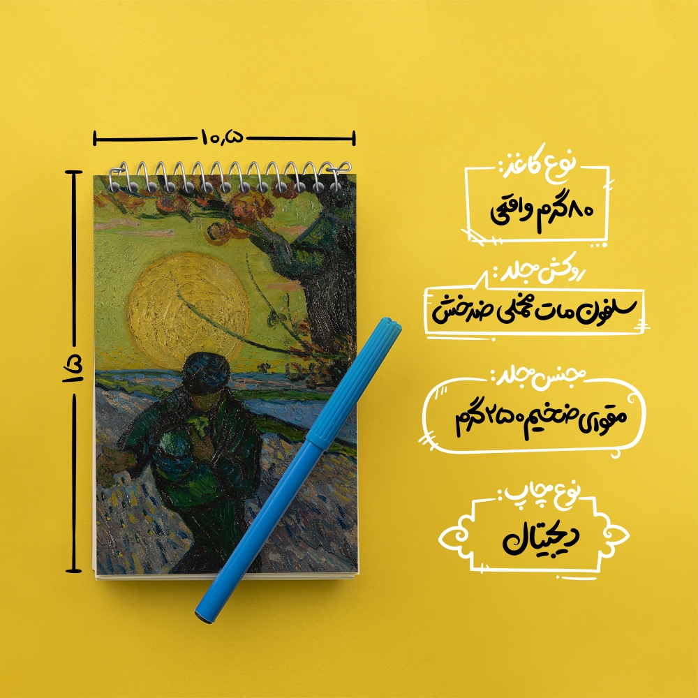 برند خندالو در زمینه تولید انواع دفاتر فانتزی و تحصیلی فعالیت میکند که به دلیل جذابیت ظاهری و طرح های متنوع طرفداران زیادی دارد. دفتر یادداشت خندالو طرح کاشت در غروب آفتاب ونسان ونگوگ (Van Gogh) محصولی مناسب برای همه عاشقان لوازم التحریر است و همچنین همه کسانی که بنا به موقعیت تحصیل یا شغلشان با دفتر و نوشت افزار زیاد سر و کار دارند. در تولید دفتر یادداشت خندالو طرح کاشت در غروب آفتاب ونسان ونگوگ (Van Gogh) از نوع صحافی فنر مارپیچ استفاده شده که در این نوع صحافی برگهها به راحتی چرخیده و یا بیرون آورده می شوند. دفتر های خندالو دارای جلد انعطاف پذیر از جنس مقوای گلاسه 250 گرم با روکش سلفون مات مخملی است که به شما امکان میدهد از دفتر خود بدون اینکه نگرانی از شکستن یا خراب شدن جلد را داشته باشید استفاده کنید و همچنین در این دفاتر از کاغذ 80 گرم با کیفیت استفاده شده که باعث میشود هنگام نوشتن به خوبی جوهر قلم بر روی صفحه نشسته و از خط خوردگیها جلوگیری کند. دفتر یادداشت خندالو با جنس و دوام مناسب، برگه های کاملاً سفید و خطوط طوسی دقیق را داراست که انسان را به نوشتن منظم و زیبا ترغیب میکند. طراحی کاملاً مناسب این دفاتر، به همراه کیفیت بالا، از آن یک محصول مورد علاقه و قابل اعتماد برای همه مقاطع تحصیلی میسازد. دفتر یادداشت خندالو طرح کاشت در غروب آفتاب ونسان ونگوگ (Van Gogh) انتخابی هوشمندانه و مناسب برای افرادی است که به دنبال دفتری با کیفیت و کاربرد عالی هستند. این دفتر، همراه خوبی برای شما در تمام مراحل تحصیل و کار خواهد بود و تجربهای لذتبخش از نوشتن و آموختن را به شما هدیه میدهد.