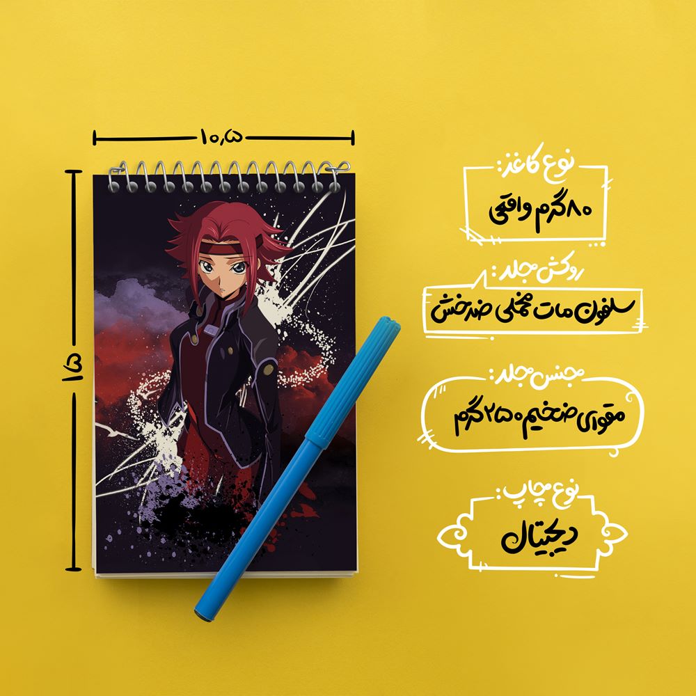 برند خندالو در زمینه تولید انواع دفاتر فانتزی و تحصیلی فعالیت میکند که به دلیل جذابیت ظاهری و طرح های متنوع طرفداران زیادی دارد. دفتر یادداشت خندالو طرح کالن کوزوکی انیمه کد گیاس Code Geass محصولی مناسب برای همه عاشقان لوازم التحریر است و همچنین همه کسانی که بنا به موقعیت تحصیل یا شغلشان با دفتر و نوشت افزار زیاد سر و کار دارند. در تولید دفتر یادداشت خندالو طرح کالن کوزوکی انیمه کد گیاس Code Geass از نوع صحافی فنر مارپیچ استفاده شده که در این نوع صحافی برگهها به راحتی چرخیده و یا بیرون آورده می شوند. دفتر های خندالو دارای جلد انعطاف پذیر از جنس مقوای گلاسه 250 گرم با روکش سلفون مات مخملی است که به شما امکان میدهد از دفتر خود بدون اینکه نگرانی از شکستن یا خراب شدن جلد را داشته باشید استفاده کنید و همچنین در این دفاتر از کاغذ 80 گرم با کیفیت استفاده شده که باعث میشود هنگام نوشتن به خوبی جوهر قلم بر روی صفحه نشسته و از خط خوردگیها جلوگیری کند. دفتر یادداشت خندالو با جنس و دوام مناسب، برگه های کاملاً سفید و خطوط طوسی دقیق را داراست که انسان را به نوشتن منظم و زیبا ترغیب میکند. طراحی کاملاً مناسب این دفاتر، به همراه کیفیت بالا، از آن یک محصول مورد علاقه و قابل اعتماد برای همه مقاطع تحصیلی میسازد. دفتر یادداشت خندالو طرح کالن کوزوکی انیمه کد گیاس Code Geass انتخابی هوشمندانه و مناسب برای افرادی است که به دنبال دفتری با کیفیت و کاربرد عالی هستند. این دفتر، همراه خوبی برای شما در تمام مراحل تحصیل و کار خواهد بود و تجربهای لذتبخش از نوشتن و آموختن را به شما هدیه میدهد.