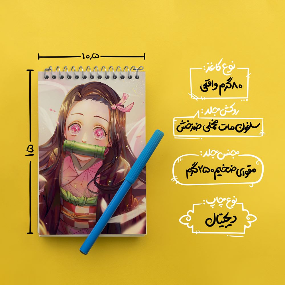 برند خندالو در زمینه تولید انواع دفاتر فانتزی و تحصیلی فعالیت میکند که به دلیل جذابیت ظاهری و طرح های متنوع طرفداران زیادی دارد. دفتر یادداشت خندالو طرح کامادو نزوکو انیمه شیطان کش محصولی مناسب برای همه عاشقان لوازم التحریر است و همچنین همه کسانی که بنا به موقعیت تحصیل یا شغلشان با دفتر و نوشت افزار زیاد سر و کار دارند. در تولید دفتر یادداشت خندالو طرح کامادو نزوکو انیمه شیطان کش از نوع صحافی فنر مارپیچ استفاده شده که در این نوع صحافی برگهها به راحتی چرخیده و یا بیرون آورده می شوند. دفتر های خندالو دارای جلد انعطاف پذیر از جنس مقوای گلاسه 250 گرم با روکش سلفون مات مخملی است که به شما امکان میدهد از دفتر خود بدون اینکه نگرانی از شکستن یا خراب شدن جلد را داشته باشید استفاده کنید و همچنین در این دفاتر از کاغذ 80 گرم با کیفیت استفاده شده که باعث میشود هنگام نوشتن به خوبی جوهر قلم بر روی صفحه نشسته و از خط خوردگیها جلوگیری کند. دفتر یادداشت خندالو با جنس و دوام مناسب، برگه های کاملاً سفید و خطوط طوسی دقیق را داراست که انسان را به نوشتن منظم و زیبا ترغیب میکند. طراحی کاملاً مناسب این دفاتر، به همراه کیفیت بالا، از آن یک محصول مورد علاقه و قابل اعتماد برای همه مقاطع تحصیلی میسازد. دفتر یادداشت خندالو طرح کامادو نزوکو انیمه شیطان کش انتخابی هوشمندانه و مناسب برای افرادی است که به دنبال دفتری با کیفیت و کاربرد عالی هستند. این دفتر، همراه خوبی برای شما در تمام مراحل تحصیل و کار خواهد بود و تجربهای لذتبخش از نوشتن و آموختن را به شما هدیه میدهد.