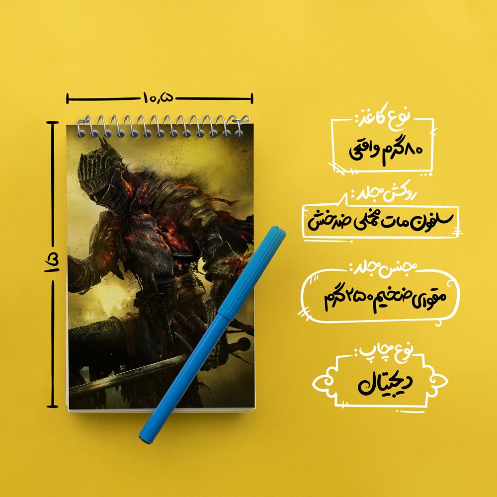 برند خندالو در زمینه تولید انواع دفاتر فانتزی و تحصیلی فعالیت میکند که به دلیل جذابیت ظاهری و طرح های متنوع طرفداران زیادی دارد. دفتر یادداشت خندالو طرح کاور رسمی دارک سولز محصولی مناسب برای همه عاشقان لوازم التحریر است و همچنین همه کسانی که بنا به موقعیت تحصیل یا شغلشان با دفتر و نوشت افزار زیاد سر و کار دارند. در تولید دفتر یادداشت خندالو طرح کاور رسمی دارک سولز از نوع صحافی فنر مارپیچ استفاده شده که در این نوع صحافی برگهها به راحتی چرخیده و یا بیرون آورده می شوند. دفتر های خندالو دارای جلد انعطاف پذیر از جنس مقوای گلاسه 250 گرم با روکش سلفون مات مخملی است که به شما امکان میدهد از دفتر خود بدون اینکه نگرانی از شکستن یا خراب شدن جلد را داشته باشید استفاده کنید و همچنین در این دفاتر از کاغذ 80 گرم با کیفیت استفاده شده که باعث میشود هنگام نوشتن به خوبی جوهر قلم بر روی صفحه نشسته و از خط خوردگیها جلوگیری کند. دفتر یادداشت خندالو با جنس و دوام مناسب، برگه های کاملاً سفید و خطوط طوسی دقیق را داراست که انسان را به نوشتن منظم و زیبا ترغیب میکند. طراحی کاملاً مناسب این دفاتر، به همراه کیفیت بالا، از آن یک محصول مورد علاقه و قابل اعتماد برای همه مقاطع تحصیلی میسازد. دفتر یادداشت خندالو طرح کاور رسمی دارک سولز انتخابی هوشمندانه و مناسب برای افرادی است که به دنبال دفتری با کیفیت و کاربرد عالی هستند. این دفتر، همراه خوبی برای شما در تمام مراحل تحصیل و کار خواهد بود و تجربهای لذتبخش از نوشتن و آموختن را به شما هدیه میدهد.