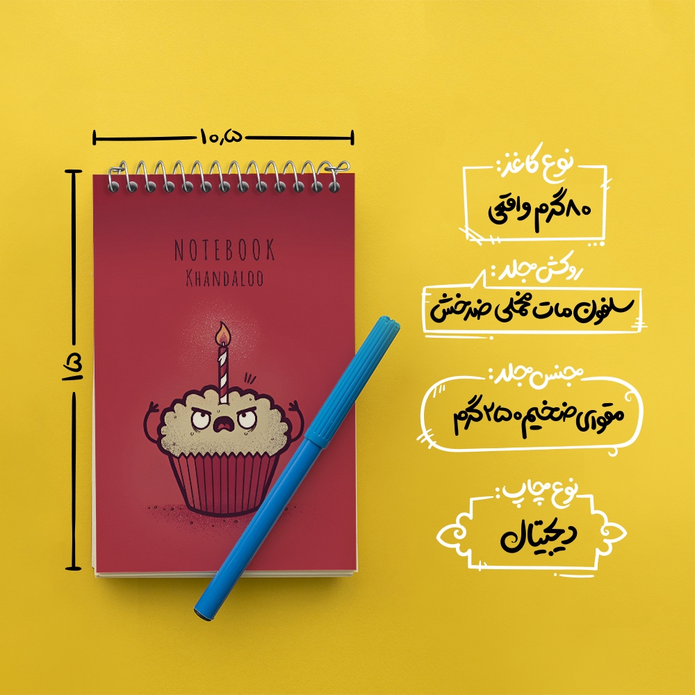 برند خندالو در زمینه تولید انواع دفاتر فانتزی و تحصیلی فعالیت میکند که به دلیل جذابیت ظاهری و طرح های متنوع طرفداران زیادی دارد. دفتر یادداشت خندالو طرح کاپ کیک عصبانی محصولی مناسب برای همه عاشقان لوازم التحریر است و همچنین همه کسانی که بنا به موقعیت تحصیل یا شغلشان با دفتر و نوشت افزار زیاد سر و کار دارند. در تولید دفتر یادداشت خندالو طرح کاپ کیک عصبانی از نوع صحافی فنر مارپیچ استفاده شده که در این نوع صحافی برگهها به راحتی چرخیده و یا بیرون آورده می شوند. دفتر های خندالو دارای جلد انعطاف پذیر از جنس مقوای گلاسه 250 گرم با روکش سلفون مات مخملی است که به شما امکان میدهد از دفتر خود بدون اینکه نگرانی از شکستن یا خراب شدن جلد را داشته باشید استفاده کنید و همچنین در این دفاتر از کاغذ 80 گرم با کیفیت استفاده شده که باعث میشود هنگام نوشتن به خوبی جوهر قلم بر روی صفحه نشسته و از خط خوردگیها جلوگیری کند. دفتر یادداشت خندالو با جنس و دوام مناسب، برگه های کاملاً سفید و خطوط طوسی دقیق را داراست که انسان را به نوشتن منظم و زیبا ترغیب میکند. طراحی کاملاً مناسب این دفاتر، به همراه کیفیت بالا، از آن یک محصول مورد علاقه و قابل اعتماد برای همه مقاطع تحصیلی میسازد. دفتر یادداشت خندالو طرح کاپ کیک عصبانی انتخابی هوشمندانه و مناسب برای افرادی است که به دنبال دفتری با کیفیت و کاربرد عالی هستند. این دفتر، همراه خوبی برای شما در تمام مراحل تحصیل و کار خواهد بود و تجربهای لذتبخش از نوشتن و آموختن را به شما هدیه میدهد.