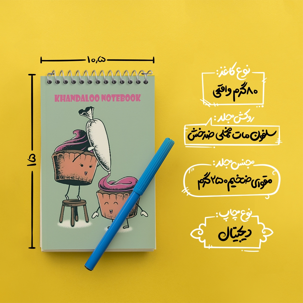 برند خندالو در زمینه تولید انواع دفاتر فانتزی و تحصیلی فعالیت میکند که به دلیل جذابیت ظاهری و طرح های متنوع طرفداران زیادی دارد. دفتر یادداشت خندالو طرح کاپ کیک کیوت محصولی مناسب برای همه عاشقان لوازم التحریر است و همچنین همه کسانی که بنا به موقعیت تحصیل یا شغلشان با دفتر و نوشت افزار زیاد سر و کار دارند. در تولید دفتر یادداشت خندالو طرح کاپ کیک کیوت از نوع صحافی فنر مارپیچ استفاده شده که در این نوع صحافی برگهها به راحتی چرخیده و یا بیرون آورده می شوند. دفتر های خندالو دارای جلد انعطاف پذیر از جنس مقوای گلاسه 250 گرم با روکش سلفون مات مخملی است که به شما امکان میدهد از دفتر خود بدون اینکه نگرانی از شکستن یا خراب شدن جلد را داشته باشید استفاده کنید و همچنین در این دفاتر از کاغذ 80 گرم با کیفیت استفاده شده که باعث میشود هنگام نوشتن به خوبی جوهر قلم بر روی صفحه نشسته و از خط خوردگیها جلوگیری کند. دفتر یادداشت خندالو با جنس و دوام مناسب، برگه های کاملاً سفید و خطوط طوسی دقیق را داراست که انسان را به نوشتن منظم و زیبا ترغیب میکند. طراحی کاملاً مناسب این دفاتر، به همراه کیفیت بالا، از آن یک محصول مورد علاقه و قابل اعتماد برای همه مقاطع تحصیلی میسازد. دفتر یادداشت خندالو طرح کاپ کیک کیوت انتخابی هوشمندانه و مناسب برای افرادی است که به دنبال دفتری با کیفیت و کاربرد عالی هستند. این دفتر، همراه خوبی برای شما در تمام مراحل تحصیل و کار خواهد بود و تجربهای لذتبخش از نوشتن و آموختن را به شما هدیه میدهد.