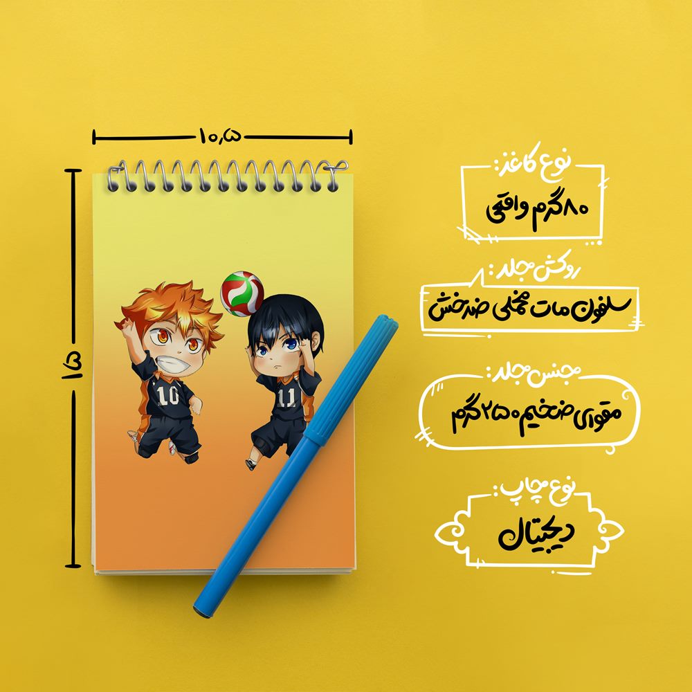 برند خندالو در زمینه تولید انواع دفاتر فانتزی و تحصیلی فعالیت میکند که به دلیل جذابیت ظاهری و طرح های متنوع طرفداران زیادی دارد. دفتر یادداشت خندالو طرح کاگیاما و هیناتا انیمه آبشار سرنوشت هایکیو کاگیاما محصولی مناسب برای همه عاشقان لوازم التحریر است و همچنین همه کسانی که بنا به موقعیت تحصیل یا شغلشان با دفتر و نوشت افزار زیاد سر و کار دارند. در تولید دفتر یادداشت خندالو طرح کاگیاما و هیناتا انیمه آبشار سرنوشت هایکیو کاگیاما از نوع صحافی فنر مارپیچ استفاده شده که در این نوع صحافی برگهها به راحتی چرخیده و یا بیرون آورده می شوند. دفتر های خندالو دارای جلد انعطاف پذیر از جنس مقوای گلاسه 250 گرم با روکش سلفون مات مخملی است که به شما امکان میدهد از دفتر خود بدون اینکه نگرانی از شکستن یا خراب شدن جلد را داشته باشید استفاده کنید و همچنین در این دفاتر از کاغذ 80 گرم با کیفیت استفاده شده که باعث میشود هنگام نوشتن به خوبی جوهر قلم بر روی صفحه نشسته و از خط خوردگیها جلوگیری کند. دفتر یادداشت خندالو با جنس و دوام مناسب، برگه های کاملاً سفید و خطوط طوسی دقیق را داراست که انسان را به نوشتن منظم و زیبا ترغیب میکند. طراحی کاملاً مناسب این دفاتر، به همراه کیفیت بالا، از آن یک محصول مورد علاقه و قابل اعتماد برای همه مقاطع تحصیلی میسازد. دفتر یادداشت خندالو طرح کاگیاما و هیناتا انیمه آبشار سرنوشت هایکیو کاگیاما انتخابی هوشمندانه و مناسب برای افرادی است که به دنبال دفتری با کیفیت و کاربرد عالی هستند. این دفتر، همراه خوبی برای شما در تمام مراحل تحصیل و کار خواهد بود و تجربهای لذتبخش از نوشتن و آموختن را به شما هدیه میدهد.
