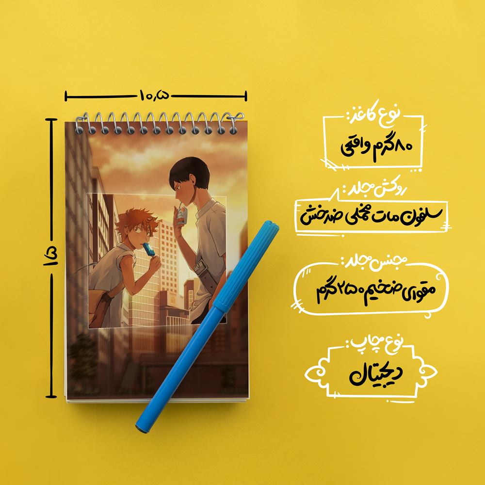برند خندالو در زمینه تولید انواع دفاتر فانتزی و تحصیلی فعالیت میکند که به دلیل جذابیت ظاهری و طرح های متنوع طرفداران زیادی دارد. دفتر یادداشت خندالو طرح کاگیاما و هیناتا انیمه هایکیو Haikyu محصولی مناسب برای همه عاشقان لوازم التحریر است و همچنین همه کسانی که بنا به موقعیت تحصیل یا شغلشان با دفتر و نوشت افزار زیاد سر و کار دارند. در تولید دفتر یادداشت خندالو طرح کاگیاما و هیناتا انیمه هایکیو Haikyu از نوع صحافی فنر مارپیچ استفاده شده که در این نوع صحافی برگهها به راحتی چرخیده و یا بیرون آورده می شوند. دفتر های خندالو دارای جلد انعطاف پذیر از جنس مقوای گلاسه 250 گرم با روکش سلفون مات مخملی است که به شما امکان میدهد از دفتر خود بدون اینکه نگرانی از شکستن یا خراب شدن جلد را داشته باشید استفاده کنید و همچنین در این دفاتر از کاغذ 80 گرم با کیفیت استفاده شده که باعث میشود هنگام نوشتن به خوبی جوهر قلم بر روی صفحه نشسته و از خط خوردگیها جلوگیری کند. دفتر یادداشت خندالو با جنس و دوام مناسب، برگه های کاملاً سفید و خطوط طوسی دقیق را داراست که انسان را به نوشتن منظم و زیبا ترغیب میکند. طراحی کاملاً مناسب این دفاتر، به همراه کیفیت بالا، از آن یک محصول مورد علاقه و قابل اعتماد برای همه مقاطع تحصیلی میسازد. دفتر یادداشت خندالو طرح کاگیاما و هیناتا انیمه هایکیو Haikyu انتخابی هوشمندانه و مناسب برای افرادی است که به دنبال دفتری با کیفیت و کاربرد عالی هستند. این دفتر، همراه خوبی برای شما در تمام مراحل تحصیل و کار خواهد بود و تجربهای لذتبخش از نوشتن و آموختن را به شما هدیه میدهد.