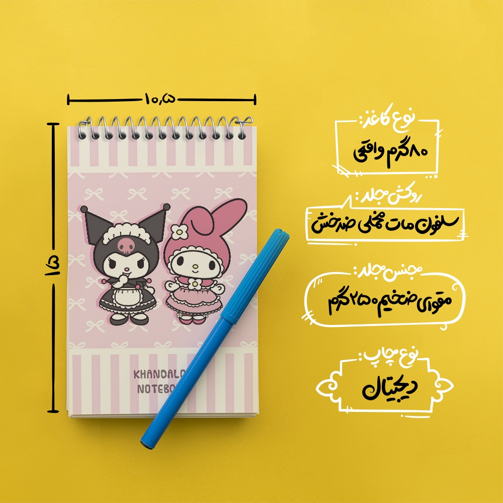 برند خندالو در زمینه تولید انواع دفاتر فانتزی و تحصیلی فعالیت میکند که به دلیل جذابیت ظاهری و طرح های متنوع طرفداران زیادی دارد. دفتر یادداشت خندالو طرح کرومی و مای ملودی محصولی مناسب برای همه عاشقان لوازم التحریر است و همچنین همه کسانی که بنا به موقعیت تحصیل یا شغلشان با دفتر و نوشت افزار زیاد سر و کار دارند. در تولید دفتر یادداشت خندالو طرح کرومی و مای ملودی از نوع صحافی فنر مارپیچ استفاده شده که در این نوع صحافی برگه‌ها به راحتی چرخیده و یا بیرون آورده می شوند.